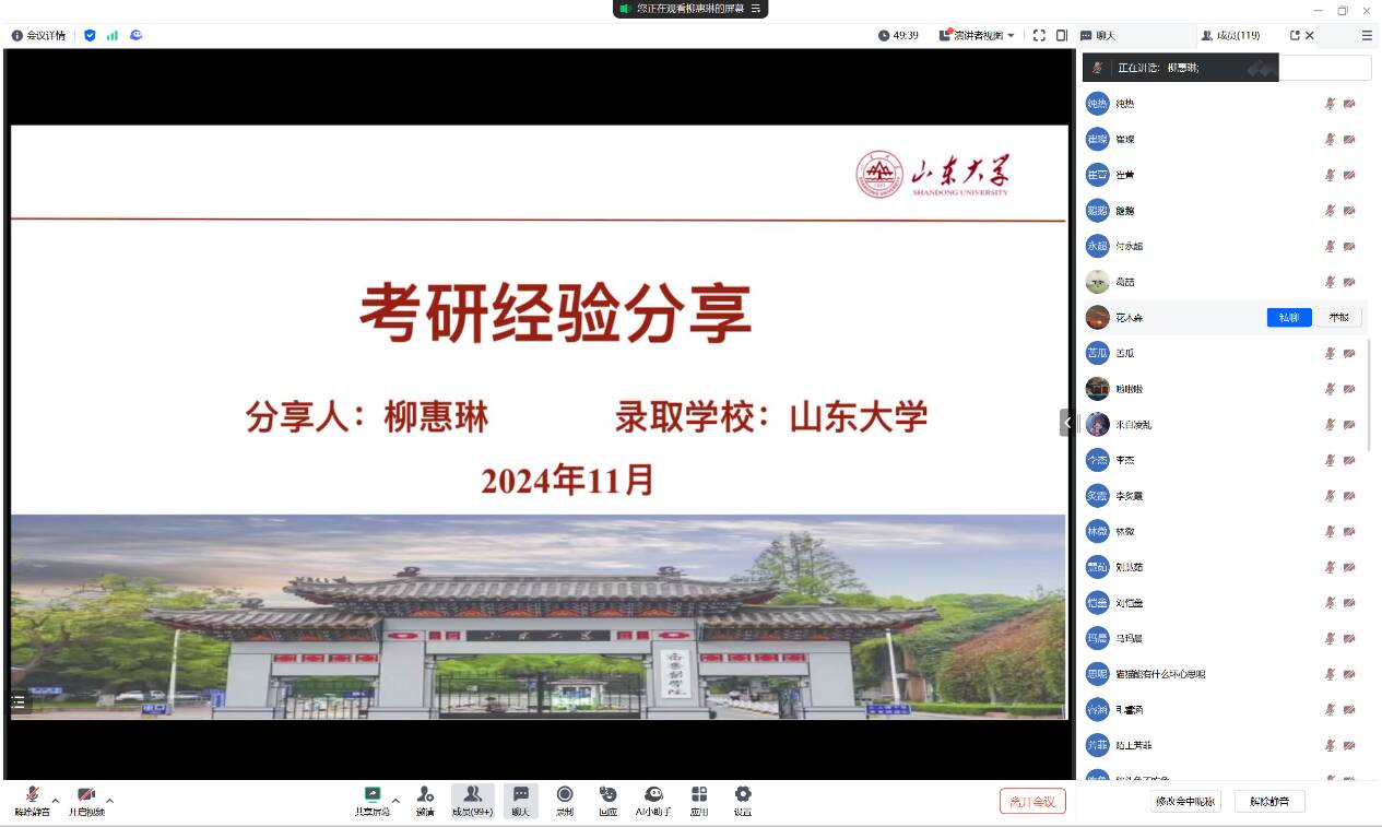 2025年考研进入倒计时,为帮助2021级考研学子优化备考策略,提升复习效率,平衡好实习、就业与考研之间的关系,近日,williamhill威廉希尔中文网站举办线上考研经验交流会,本次交流会邀请了2024届4名考研成功的同学做经验分享。