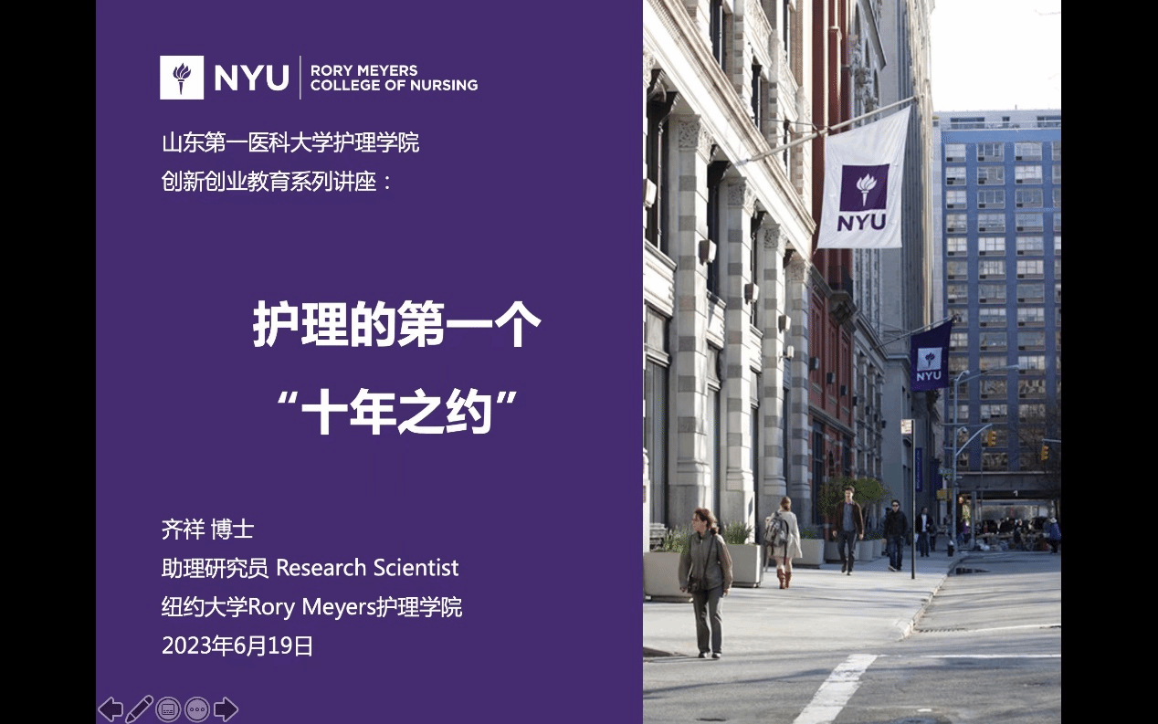 学院双创教育周第一场报告是来自纽约大学Rory Meyerswilliamhill威廉希尔中文网站助理研究员齐祥博士,题目是《护理的第一个十年之约》。齐祥结合自身的学习成长经历,介绍了为什么选择护理专业以及如何在学期间确定研究方向,并与大家分享了自己的研究成果和未来的研究规划。报告内容深入浅出,通俗易懂。同学们纷纷表示要以齐祥博士为榜样,积极投身科技创新,努力成为护理科研的生力军。