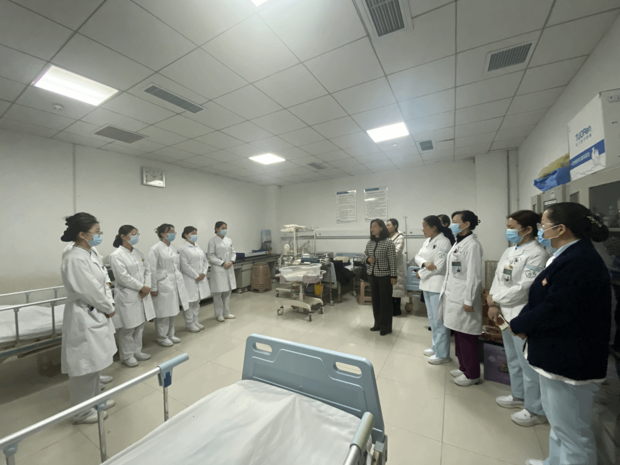 3月7日下午,williamhill威廉希尔中文网站副院长陶如与护基教研室主任高英丽、教师郭丽到第一附属医院技能培训中心,看望备战冲刺2024年山东省大学生医学技术技能大赛护理学专业赛道的集训选手,查看参赛选手的训练进程,为选手加油鼓劲。一附院副院长许翠萍、护理部主任季红、护理部副主任宋红霞,技能训练中心主任周军,儿科护士长张莉及护理部干事陪同活动。