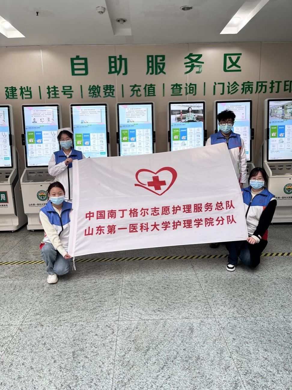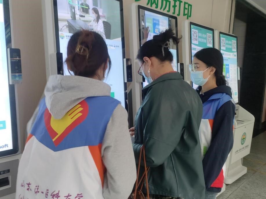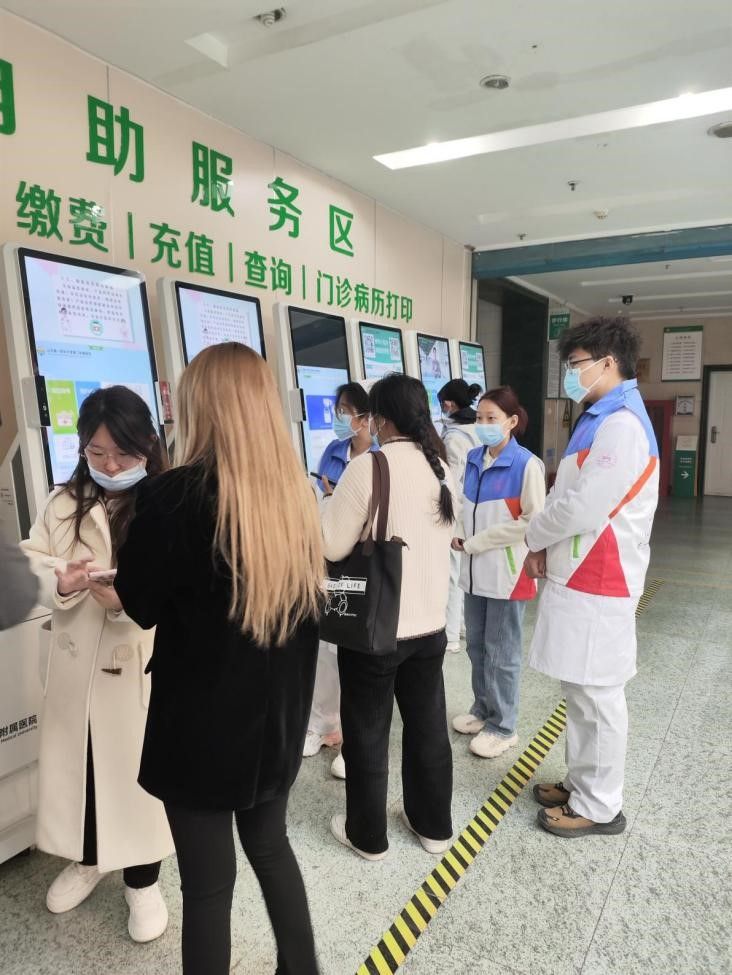 活动开展前,队员们进行了统一的工作培训,增强对导诊服务工作的熟悉程度。在志愿服务现场,队员们耐心地为患者们讲解并演示如何使用自助挂号机输入身份信息、选择科室和医生、完成挂号缴费等操作步骤,此外还根据老年患者的实际需求提供个性化的服务,如协助填写病历信息、提醒相关注意事项等。队员们的耐心引导不仅节省了患者的时间,提高了就医效率,还获得了大家的一致好评。一位老年患者在成功挂号后,感激地对队员们说:“谢谢你们,以前我来医院挂号总是让我头疼不已,现在有了你们的帮助,挂号时间大大缩减,真是太方便了!”