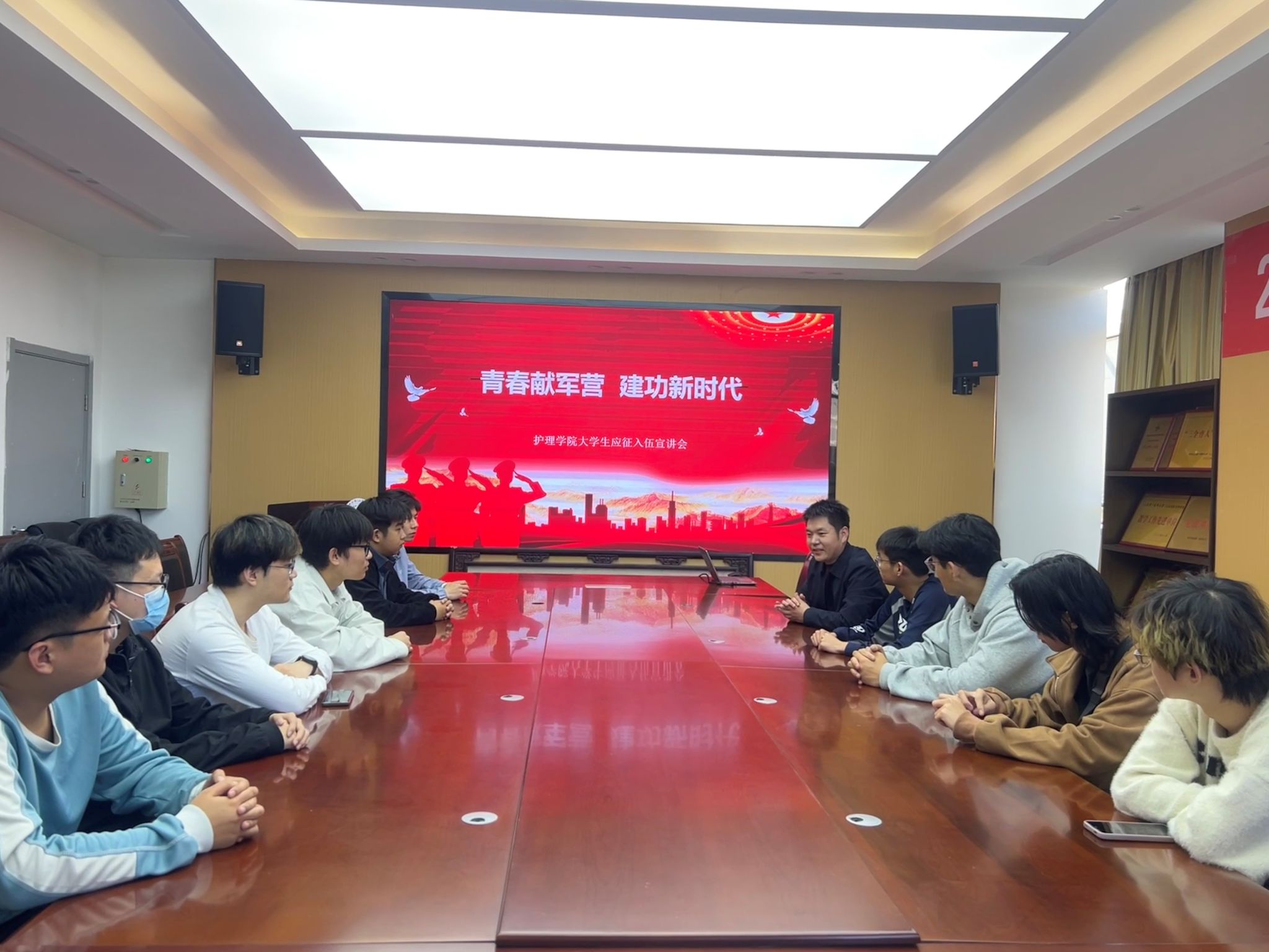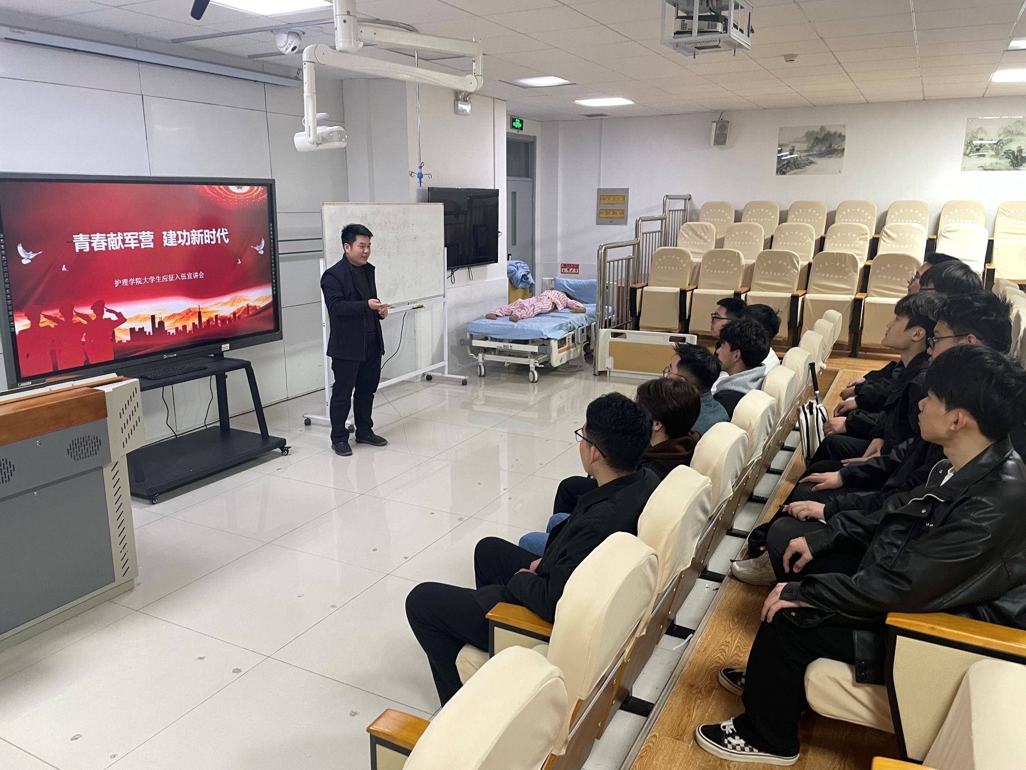 为增强大学生的国防意识,鼓励更多优秀护理学子投身国防建设,3月份,williamhill威廉希尔中文网站面向大三、大四男生举办了两次征兵宣传活动。学院组织员赵学超主持活动。