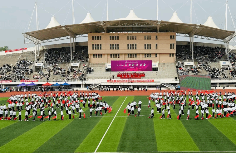 “运动会上,少年们青春洋溢,舞动着青春的旗帜。青春会远去,爱不会;生活会老去,少年不会。愿我们都像五月的花海,像初升的大阳,像曾经每一代的中国先进五四青年一样,永葆朝气。”