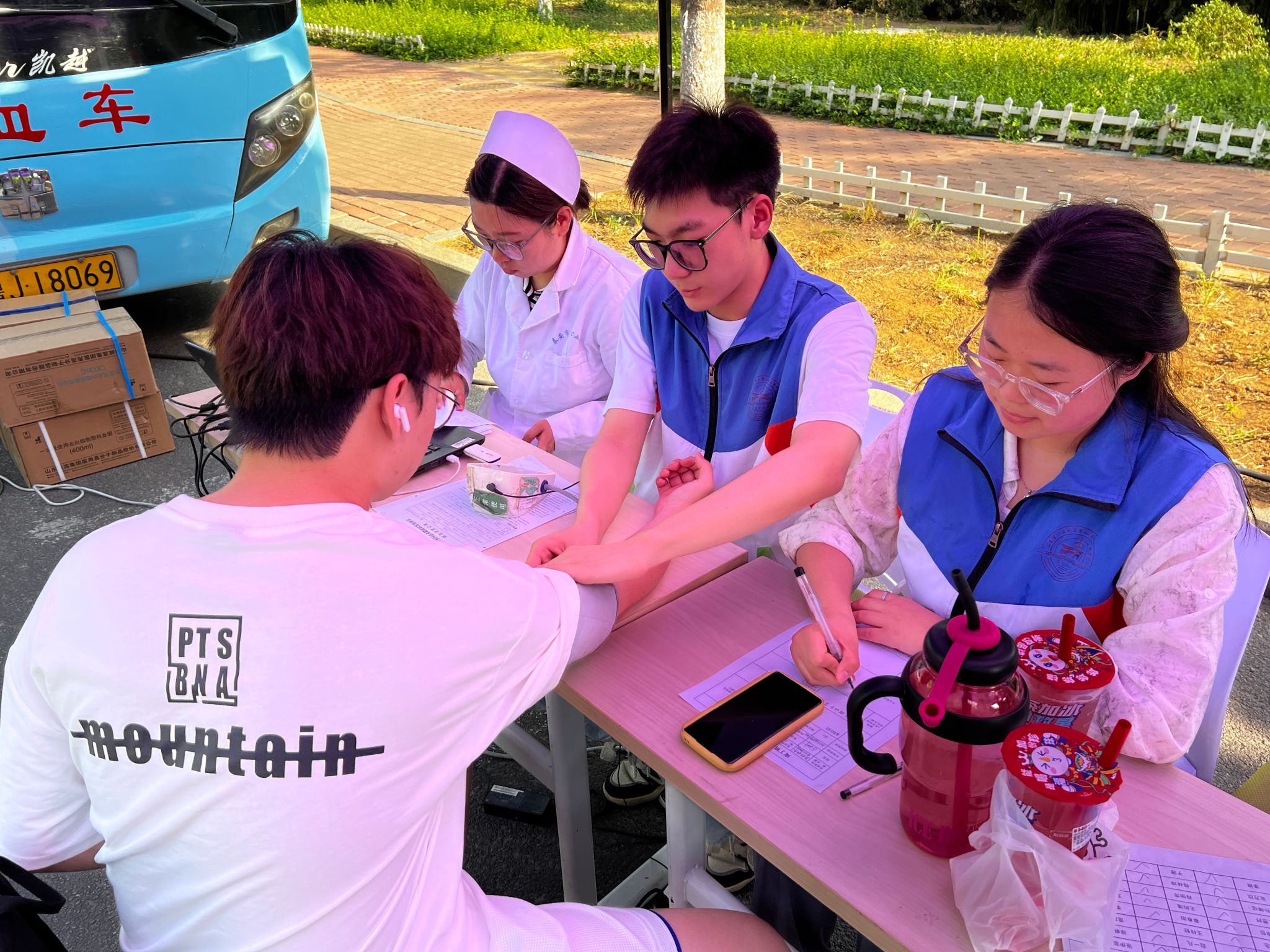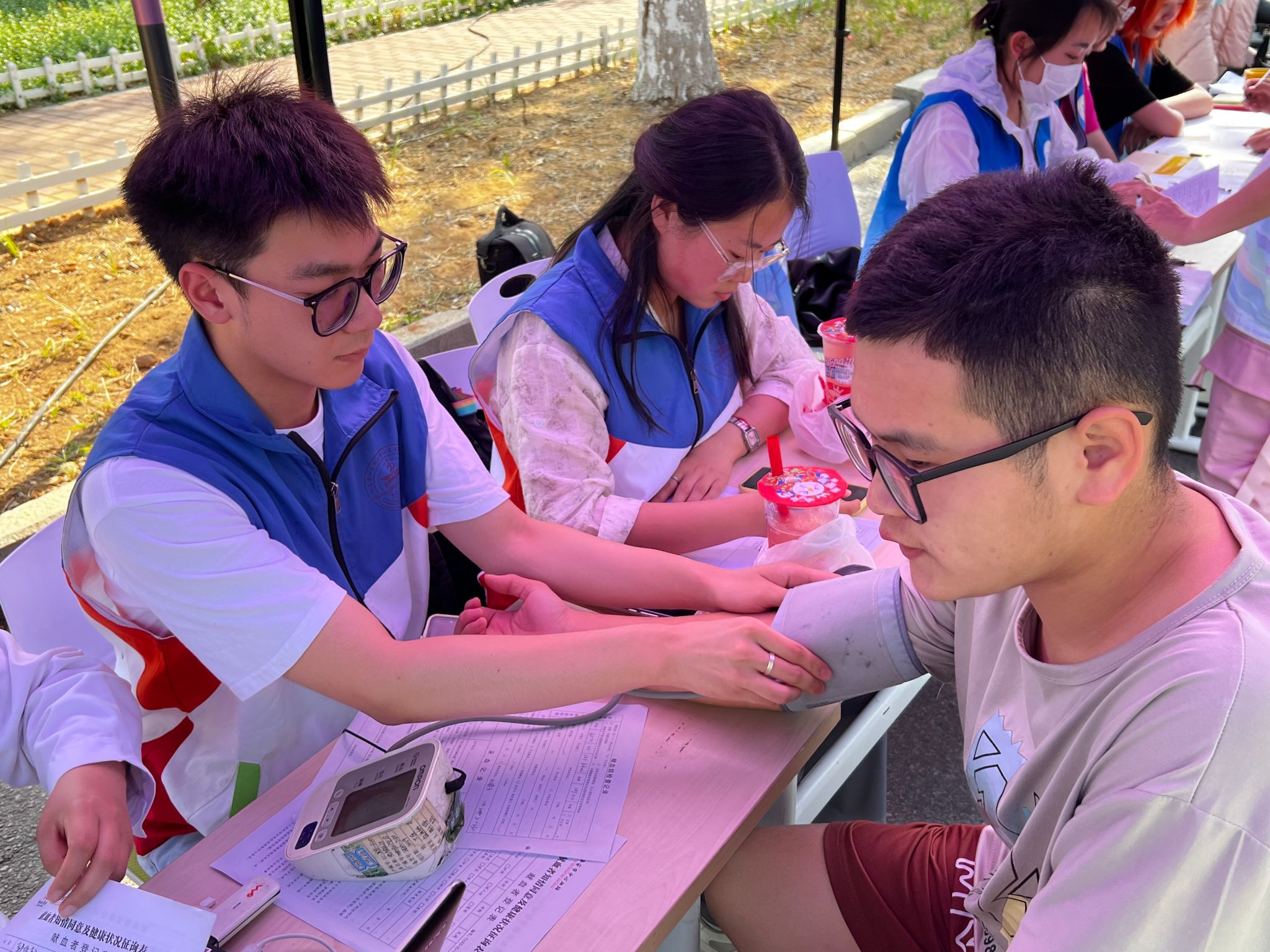 活动当天,队员们向路过的同学宣传了无偿献血的相关知识,解答相关疑惑,鼓励他们积极参与献血活动。队员们的专业讲解与热心服务缓解了同学们的紧张与焦虑。在队员们的引导下,同学们有序完成了填表登记、基础检查等献血前的准备工作,他们勇敢地伸出臂膀,以热血传递爱心。献血完成后,同学们不仅得到了及时的营养补充和工作人员的关怀照料,还挑选了自己喜欢的纪念品。他们纷纷表示无偿献血是一次光荣的行动,希望越来越多的青年学子用行动传递爱心与希望。
