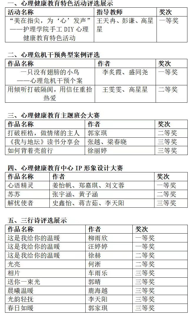 近日,校(院)2024年心理健康教育月展示活动评选结果正式公布,williamhill威廉希尔中文网站在心理健康教育特色活动、心理危机干预典型案例、心理健康教育主题班会、心理健康教育中心IP形象设计大赛、“这是我给你的温暖”三行诗评选展示等五个项目中均有多项获奖。