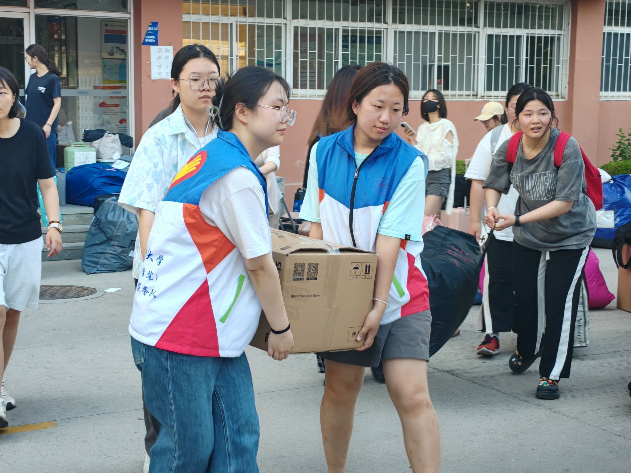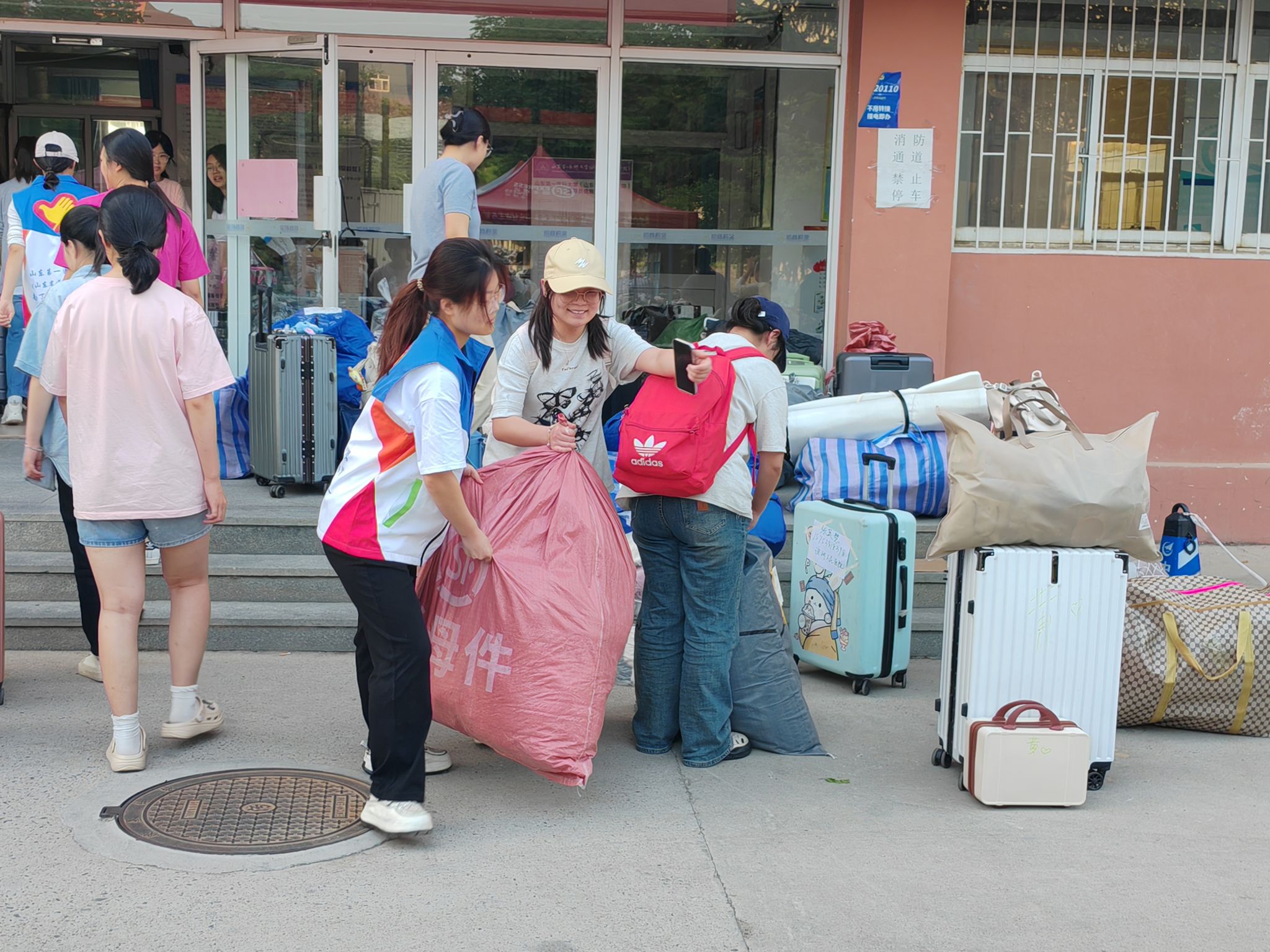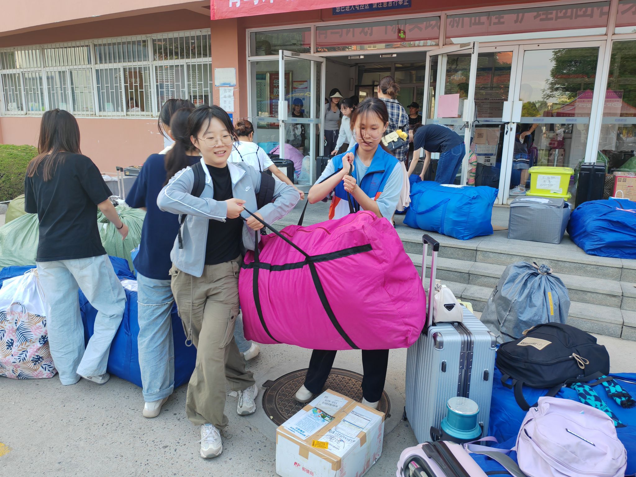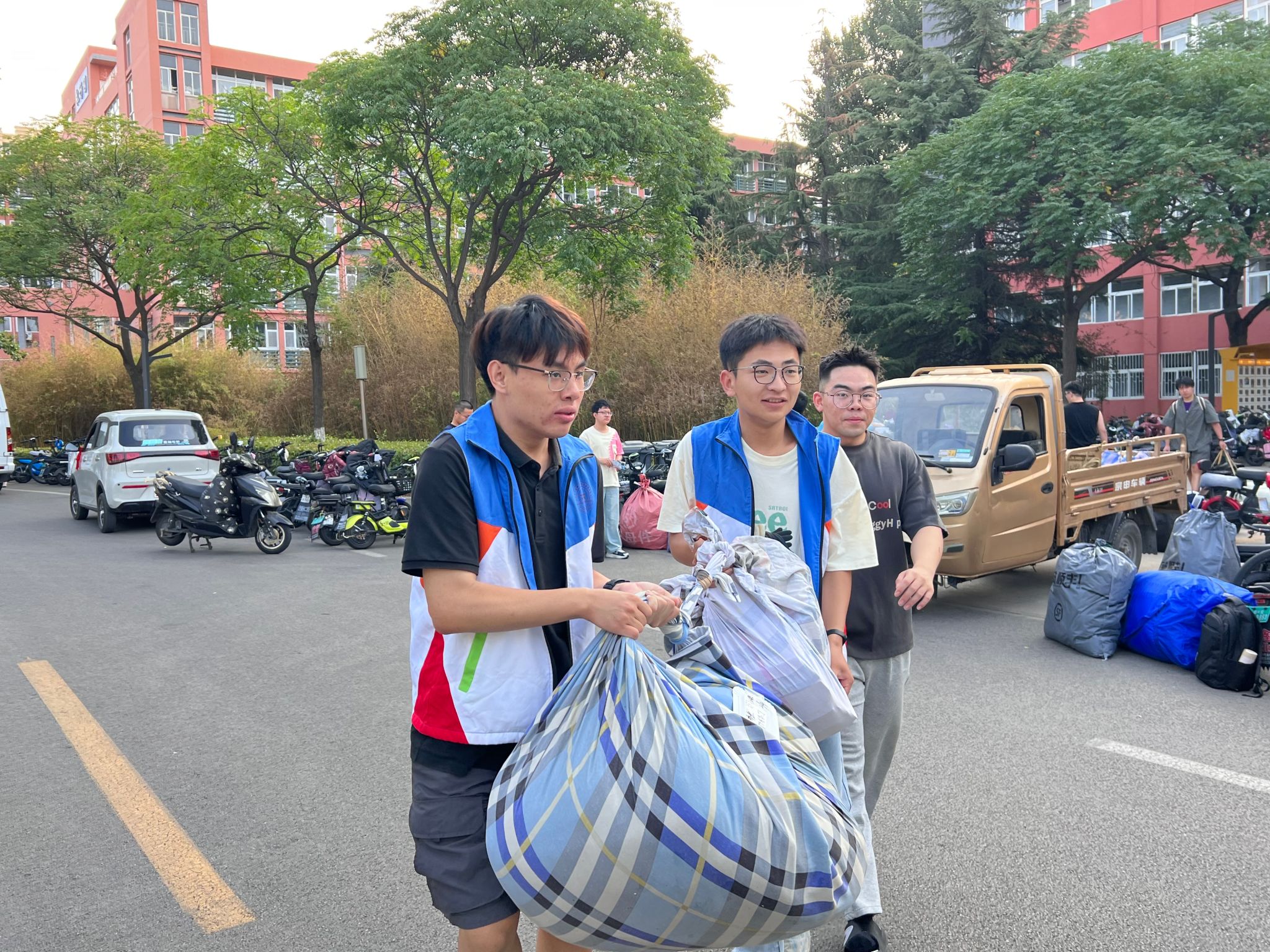22、23级志愿者们早上5:30就已集合在宿舍楼前,开始了一早的忙碌,他们脸上洋溢着热情的笑容,仿佛春日里的暖阳一般,温暖着每一位同学。每一次的主动上前,志愿者们接过21级学长、学姐们手中沉甸甸的行李,用实际行动送上自己的美好祝福,诠释着“护理一家亲”的美好内涵。