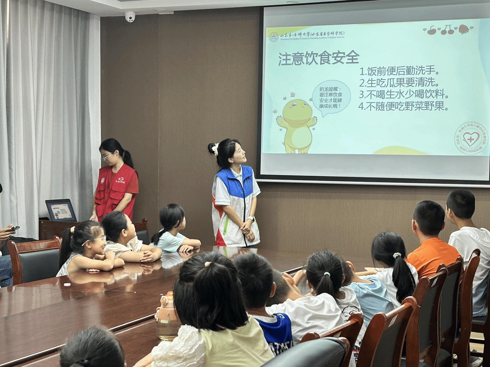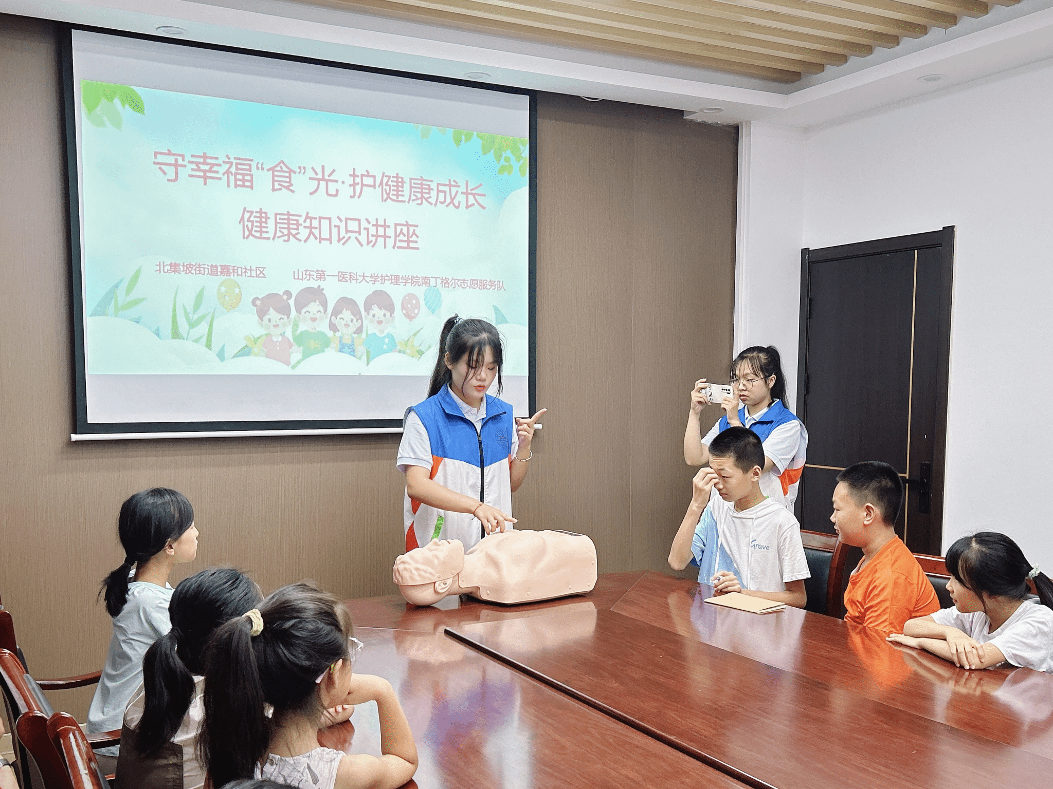 活动当天,队员们深入嘉和社区,为社区孩子们举办了一场生动而富有教育意义的饮食习惯健康知识宣讲小课堂。宣讲内容既富有趣味性,又紧密贴合儿童日常生活实际,队员们通过引入孩子们喜闻乐见的动画角色,介绍了饮食对身体健康的深远影响,又用通俗易懂的语言讲解了如何培养并维持良好的饮食习惯。此外,为增强孩子们的参与感和互动性,现场特别设置了提问互动环节,整个活动现场气氛热烈而温馨。