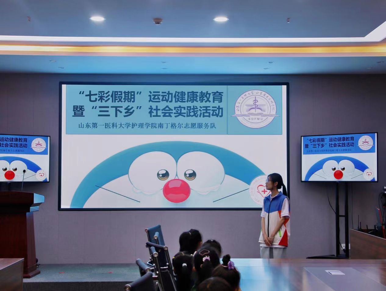 活动当天,队员们采用PPT讲解和动画演示相结合的形式,为社区幼儿讲述了运动的好处以及科学运动的方式和方法,在寓教于乐中传授基础健康知识,培养幼儿的运动兴趣。此外,队员们还设置了知识问答环节,旨在提高孩子们的课堂参与感,帮助孩子们巩固所学到的基础健康知识,在日常生活中养成良好的运动健康习惯。