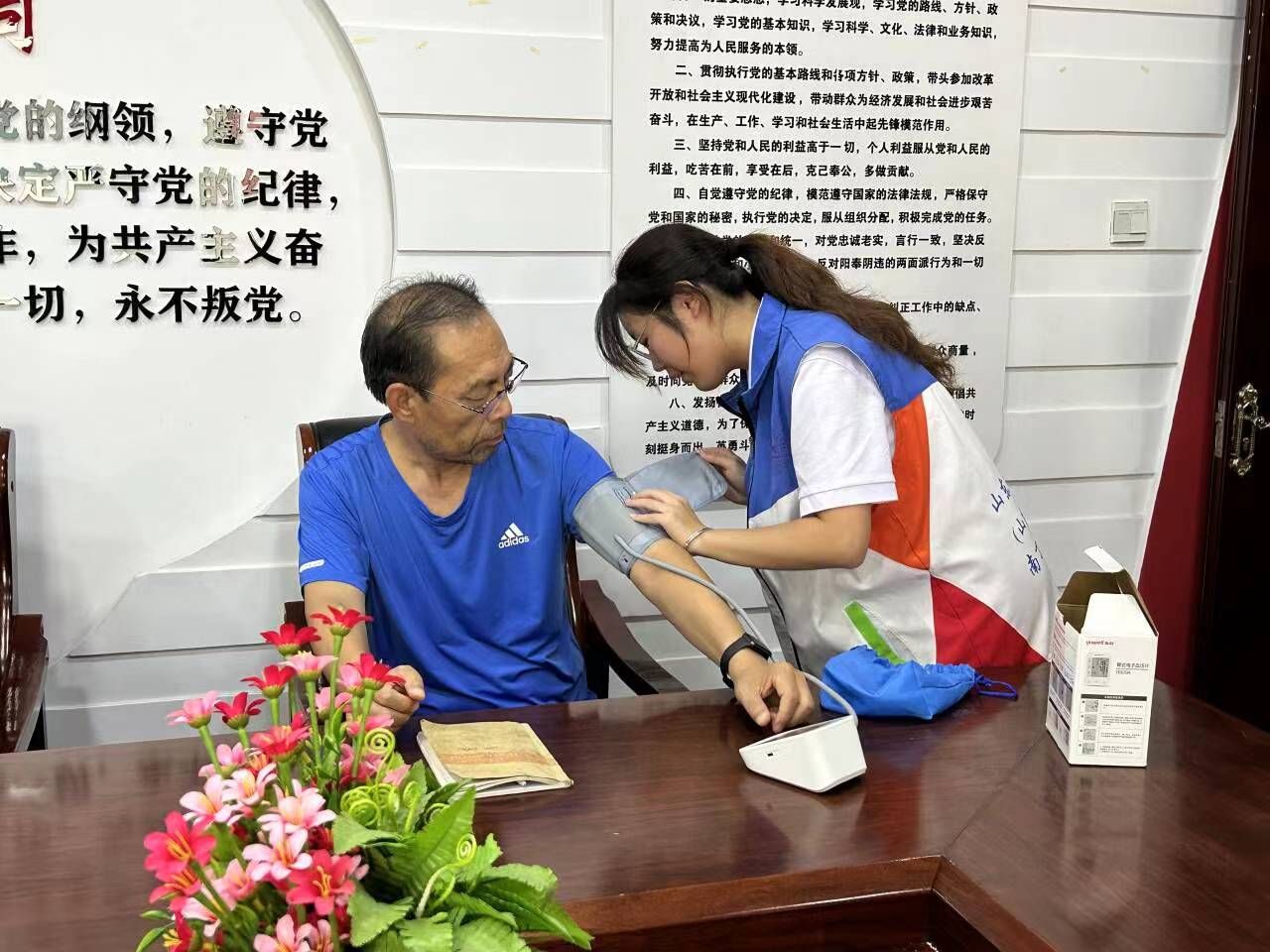 活动当天,在社区活动中心内,志愿者们为居民测量血压、血糖,细心询问他们的日常饮食习惯和过往的血压、血糖情况,并结合测量结果为他们提供科学的生活建议。对于血压异常的居民,志愿者们也特别强调了饮食健康与规律运动的重要性,叮嘱他们注意清淡饮食,减少油盐摄入,提醒他们坚持每天规律运动,并定期进行健康检查。