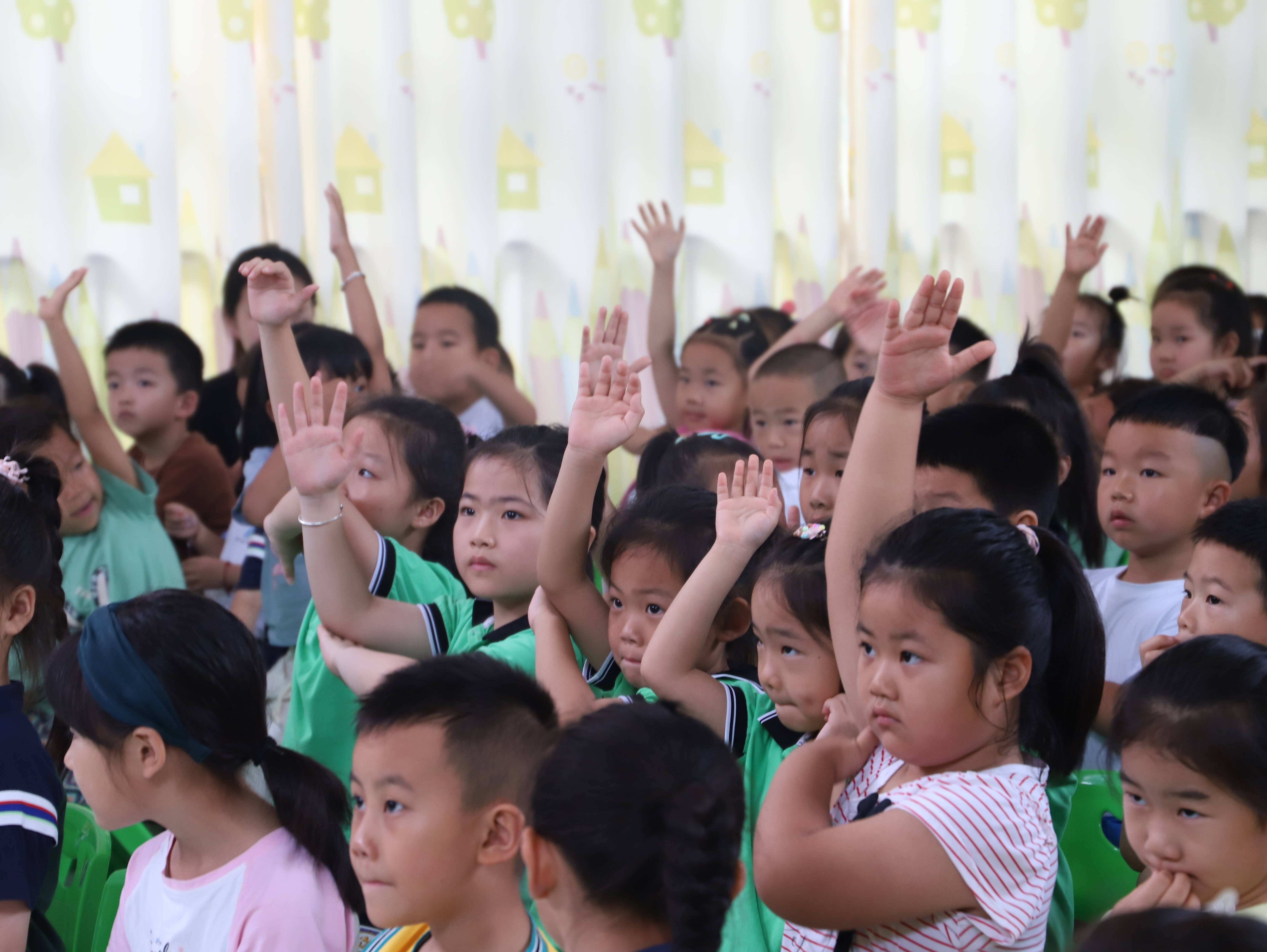 护理学子针对所学的健康知识设置了互动环节,孩子们纷纷举手抢答。