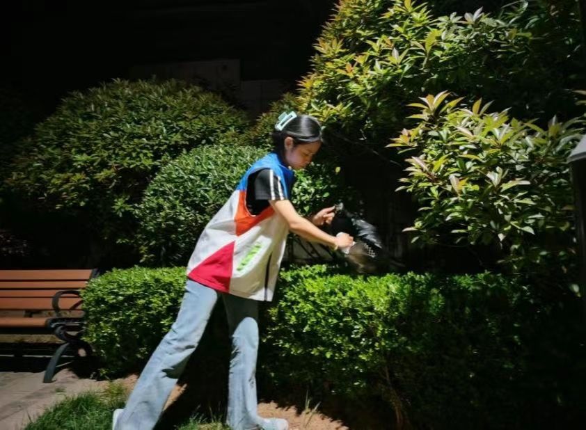 此外,队员们还前往街道、公园等公共区域,利用扫帚、垃圾袋等工具,清理道路两侧的落叶、绿化带中的垃圾及散落的烟蒂,并对停放不规范的电动车进行了有序整理。队员们表示,他们将始终保持对家乡的热爱,自发地将环保理念融入到未来的学习和工作中去,为构建更加和谐、美丽、宜居的家园贡献青春力量。
