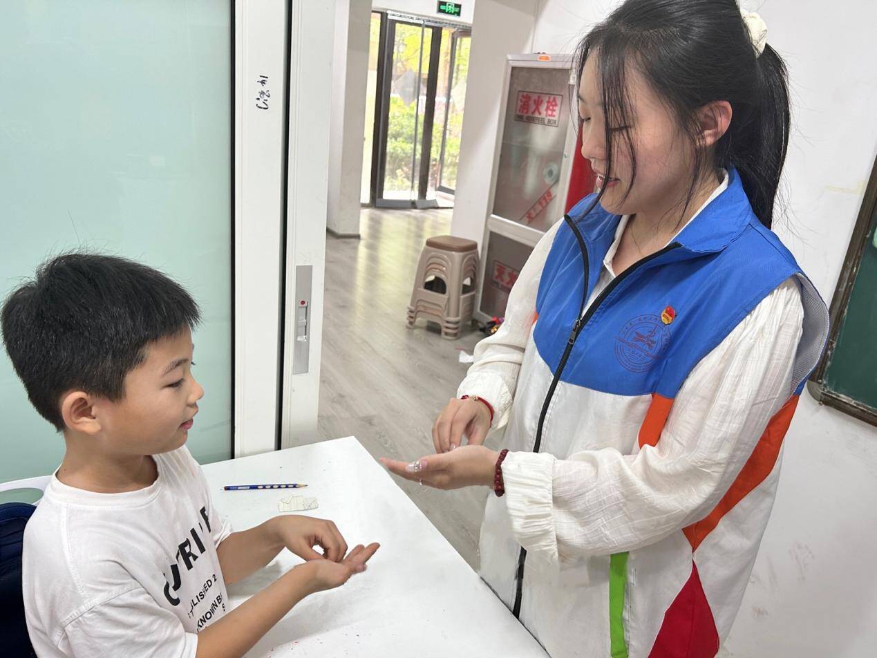 活动伊始,队员通过鲜活的案例与互动问答,为托管所的小朋友们带来了一堂生动有趣的情绪管理课,引导他们了解情绪本质,掌握情绪管理技巧。随之而来的健康知识科普环节则将气氛推向高潮,队员们详细地向孩子们科普了七步洗手法的相关知识,结合现场演示与实操练习,让他们不仅掌握了技能,更深刻认识到了健康生活方式的重要性。最后,队员呼吁小朋友们在生活中注意个人卫生,活动在一片欢声笑语中结束。