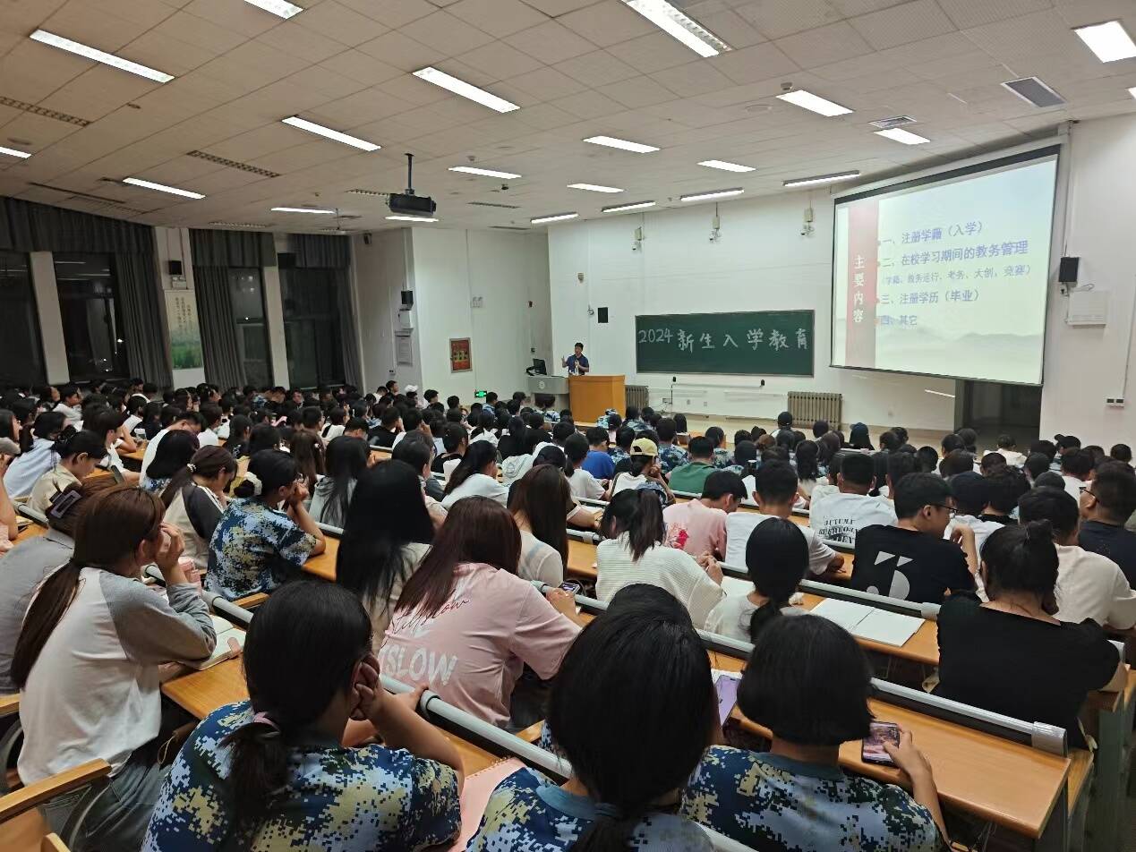 为强化2024级新生的自主学习能力及在校期间的安全防范意识,助力新生尽快和更好地融入大学生活,8月26日晚,williamhill威廉希尔中文网站邀请安保部科长韩强和教务部科长张燕堂为2024级新生开展新生入学教育专题讲座,新生辅导员王有娟主持讲座。