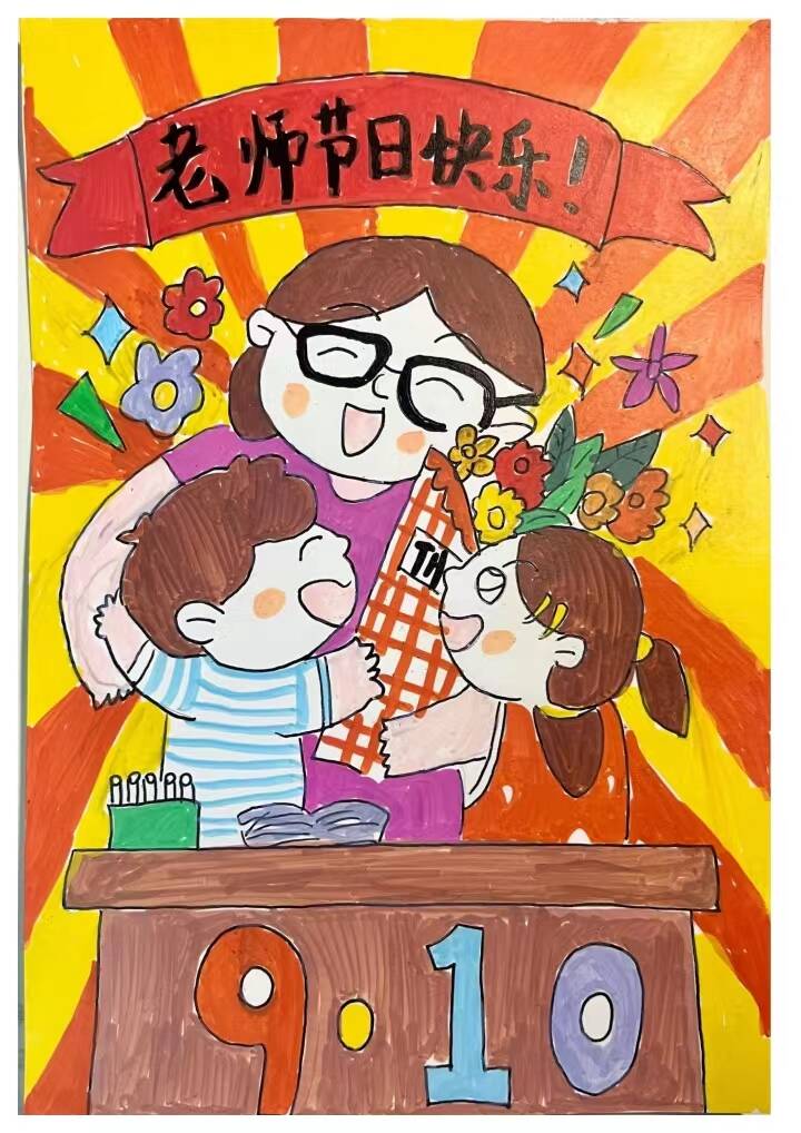 活动期间,同学们围绕教师节祝福的主题积极展开绘画创作。他们充分发挥自己的想象力和创造力,运用各种绘画形式创作出一幅幅饱含深情的作品。这些作品内容积极向上,色彩搭配协调,具有较强的艺术表现力和感染力,对老师的敬意与感恩之情跃然纸上。通过对各个作品的综合评选,以下作品在活动中脱颖而出: