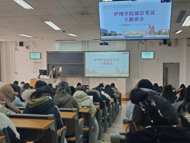 班会上,根据校(院)学工部下发的《关于加强考风考纪教育和学生安全教育管理工作的通知》要求,辅导员组织同学们集中学习《关于诚信应试致广大同学的一封信》《williamhill威廉希尔中文网站(山东省医学科学院)考场规则》等文件,观看警示短片,学习相关考试作弊案例,签订《考试诚信承诺书》。辅导员要求大家要认真学习学校的考试纪律规定,严格约束自己的行为,端正考风考纪,杜绝考试作弊。
