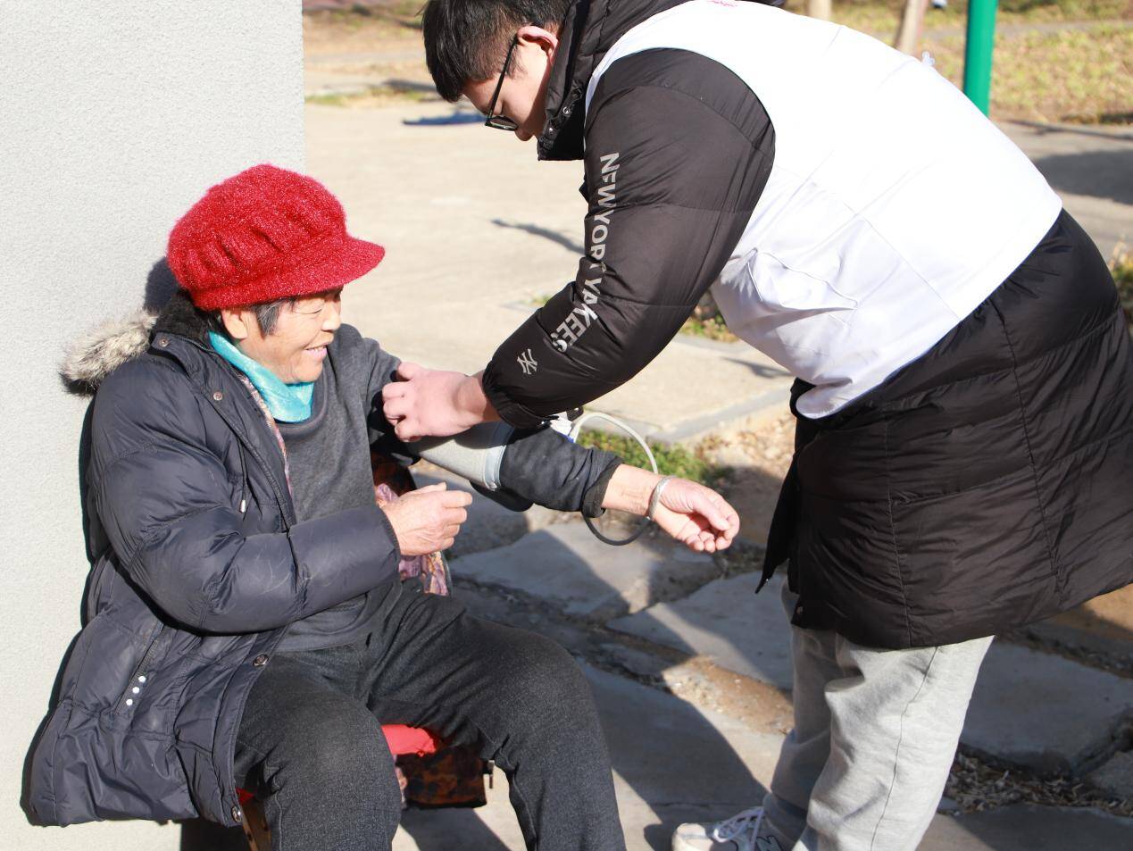 活动中,队员们为前来咨询的居民量血压、测血糖,并依据检查结果提供专业的健康建议,受到了社区居民的一致好评。此外,队员们还为居民现场示范了七步洗手法、八字包扎和螺旋包扎等实用技能,并向其科普冬季多发病与老年慢性病的防控知识。科普结束后,居民们纷纷表示收获颇丰。