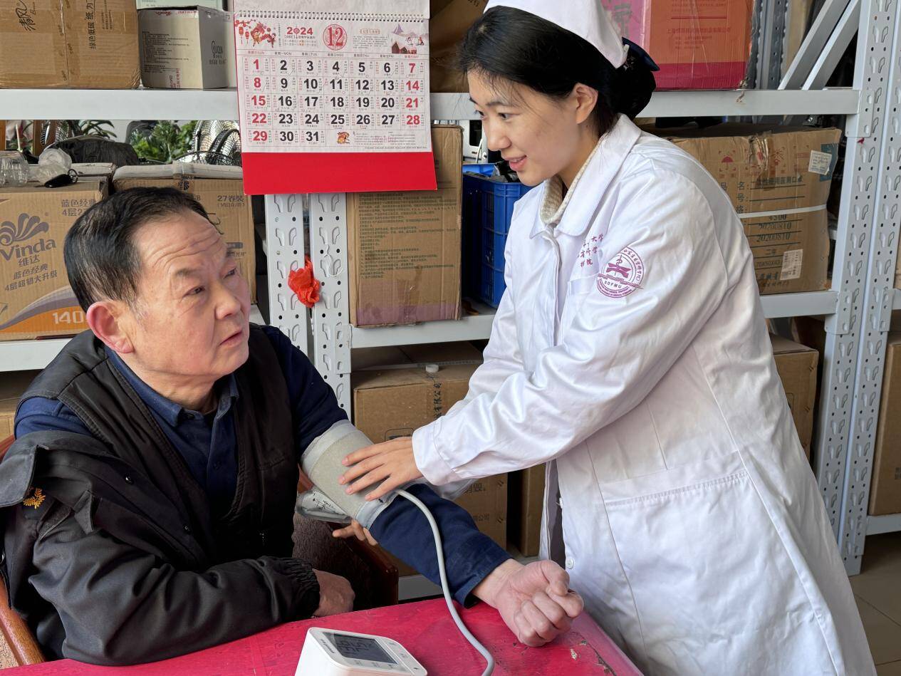 活动当日,青马班学员深入宿舍公寓楼、教学楼以及餐厅等区域,为后勤人员提供血压、血糖测量服务,并依托护理专业知识,根据测量结果,为其提供科学的健康生活建议。服务之余,学员们还向其讲解常见疾病的预防知识,用通俗易懂的语言让大家更好地了解如何在繁忙的工作中保持良好的身体状态。健康义诊服务,不仅切实助力后勤人员了解自身健康状况,更是在校园中传递了温暖与爱心,彰显了新时代青年学子的担当与风采。