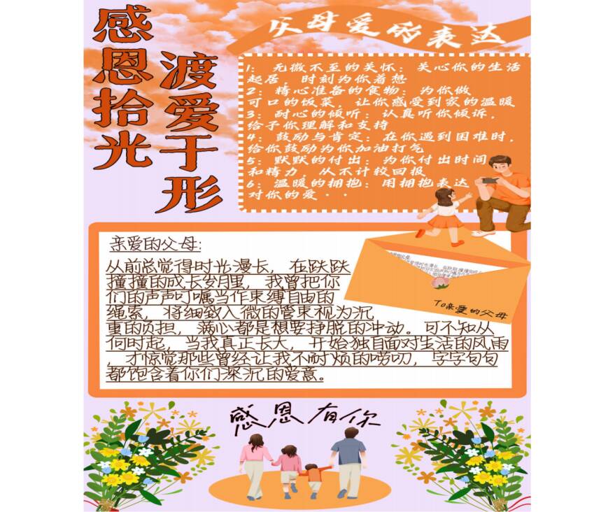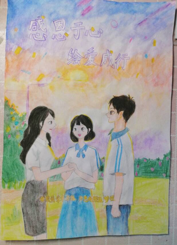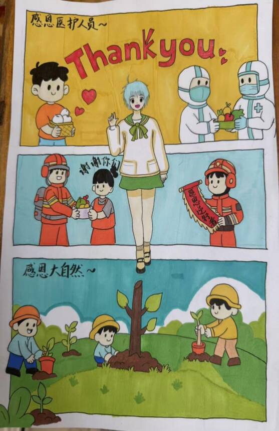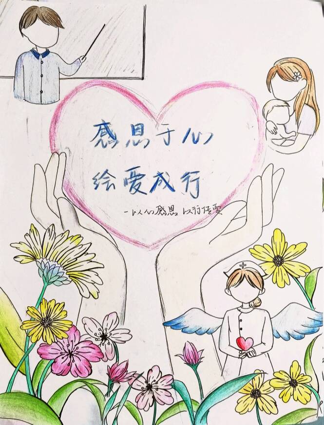 活动期间,同学们围绕家人、老师、医护人员等感恩对象积极展开创意创作,以感恩为纽带、以海报为载体,充分发挥创意,精心创作海报,将内心的感恩之情转化为生动的视觉作品。通过对各个作品的综合评选,以下作品在活动中脱颖而出: