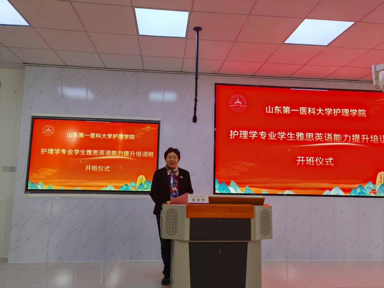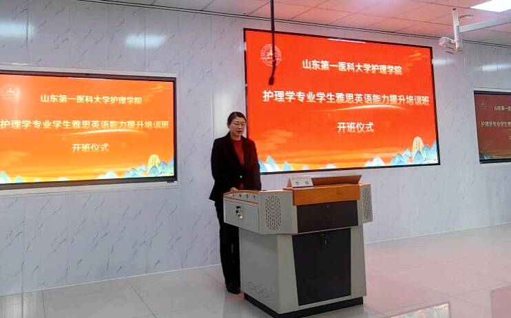 李楠在致辞中表示,此次两院合作举办雅思培训班,是优势互补、协同育人的重要举措。她强调,流利的英语是护理人才参与国际交流与竞争的“通行证”和“金话筒”,两院整合优质师资,致力于系统提升学生的英语综合应用能力,助力大家突破语言关隘,自信地向世界讲述中国护理故事。