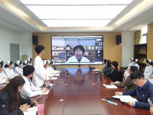 在互动交流环节,学生代表就有关男护士在医院里与女护士在工作上的不同和优势、人工智能对未来护理专业人员的就业影响等问题向各附属医院的前辈们请教。许翠萍、杨朝霞、杨丽娟结合多年的管理经验、丰富的临床一线经历和护士职业的发展前景解答了同学们的问题和疑惑。2020级护理学本科卓越班徐枫霖代表同学们表示,感谢护理前辈们的答疑解惑和谆谆教诲,作为一名护理专业学生,一定沿着前辈们的足迹,接续奋斗,不辱使命。