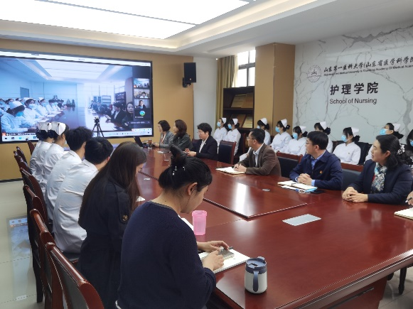 王宇轩首先向学院全体师生表示节日的祝贺,向奋战在一线的各附属医院全体护士及护理工作者表示崇高的敬意。他指出,2020年新冠肺炎疫情来袭,山一大医疗系统的全体护士及护理工作者,始终挺立在疫情的“风暴眼”,战斗在防控的第一线,用自己的行动践行护理誓言,肩负起医者仁心的使命担当,是“新时代最可爱的人”。王宇轩对广大护理学子提出殷切希望,强调护理学子是未来护理事业的践行者,要以白晓卉同志为榜样,发愤学习,掌握过硬本领,锤炼优秀品质,用责任、担当和爱心,去诠释无悔的青春,以护理学子崭新的面貌,续写山一大新的荣光。