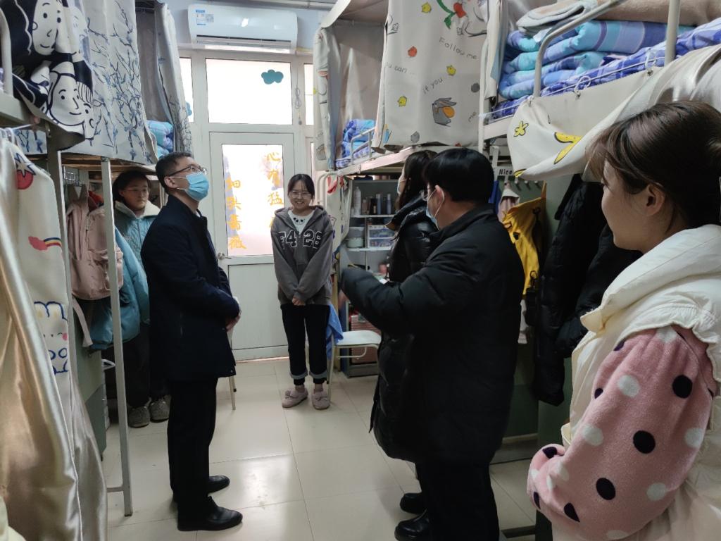 在学生公寓,老师们为同学们送上亲切问候。张延玲嘱咐同学们要严守疫情防控规定,保持健康心态;出门佩戴口罩,勤洗手消毒,遵守防疫规定,注意个人防护。同学们表示,学校的防疫举措和学习安排等工作都做得非常充分,自己一定会遵守疫情期间各项规定,保质保量认真完成各项学习任务。老师们提醒同学们注意宿舍用电安全,一定要安全规范使用电器,离宿断电;要勤开窗通风,维持好宿舍卫生;要提高警惕性,谨防电信诈骗。