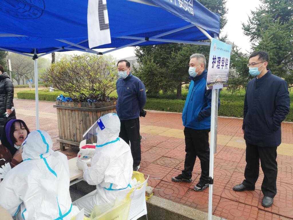 学院时刻绷紧疫情防控这根弦,认真组织、配合实施核酸日检,始终没有丝毫懈怠,切实保证抽检的科学性和规范性。校(院)副校(院)长王鹏程、李栋多次深入williamhill威廉希尔中文网站现场指导工作。williamhill威廉希尔中文网站同志们每天都会在现场自始至终维持秩序,合理协调学生核酸检测安排,确保学院全体同学核酸抽检安全高效进行。此外,学院每天也对实验室等进行安全检查,确保学院综合安全。