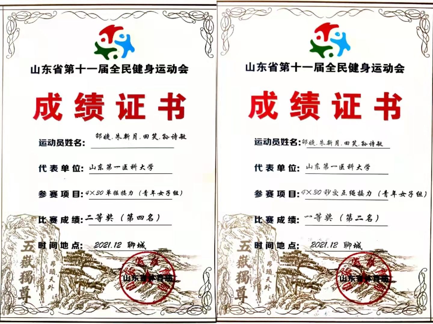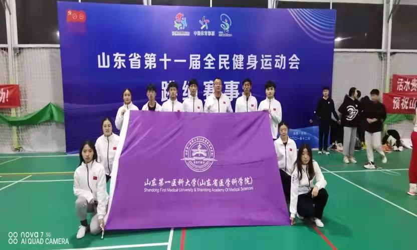 为提高全民身体健康素质,展现全民运动的精神风貌,12月4日至5日,由山东省体育局主办,山东省跳绳运动协会协办的“2021年山东省第十一届全民健康运动会跳绳比赛”在聊城落下帷幕。护理学子贾志浩、田笑积极参赛,为校(院)取得了单人项目两金和团体项目三银的佳绩,田笑同学荣获山东省体育局颁发的“优秀运动员”荣誉称号。
