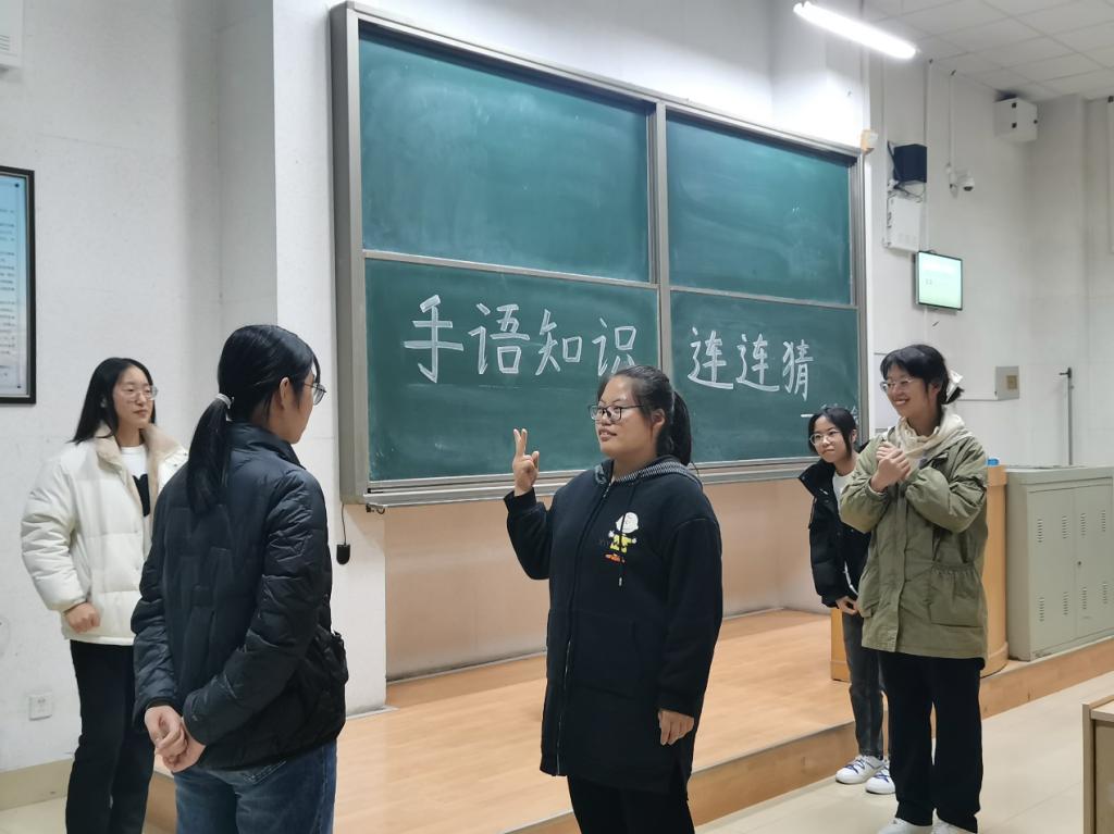 活动伊始,协会副会长为大家表演了手语舞——《不完美小孩》,详细介绍了手语舞的特点,并带领大家一起学习。接下来,以所学手语知识为载体,用接龙传递的方式让同学们在游戏中学会用手语进行交流。同学们分为三组队伍进行比赛,大家通过用手语传递信息,不仅考验了个人的知识储备,还锻炼了同学们的反应能力。活动现场氛围非常活跃,在欢笑中结束了本次活动。