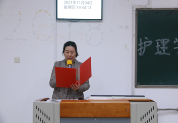 学工办主任王有娟、团总支副书记张恒丽分别宣读各学生组织成员名单和优秀学生干部、优秀志愿者名单。张延玲为学生干部代表颁发聘书,林桦为2020-2021学年“优秀学生会干部”、“优秀青年志愿者”获奖同学颁奖。