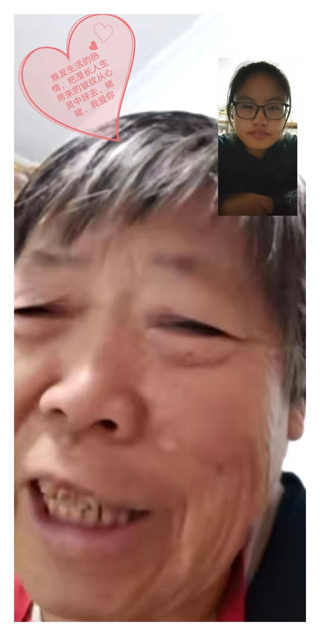 网络科技打破了时空局限,实现了跨地区的交流。通过微信与长辈线上视频聊天,向他们道一声问候。我们现在虽不能常常陪伴在他们身边,但我们可以通过一句语音,一段文字,寄托对他们的祝愿,给他们多一些关爱。