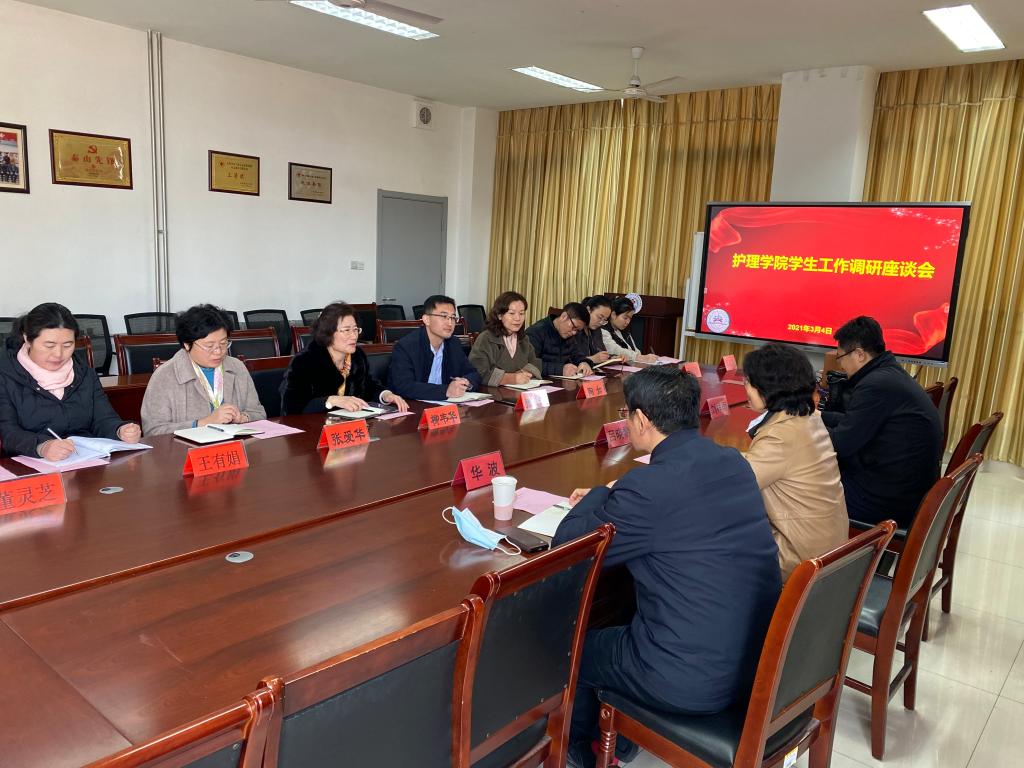 学院党委书记张延玲汇报了学院学生工作情况。近年来,在校(院)党委的坚强领导下,学院紧紧围绕落实立德树人根本任务,始终做到“五个坚持”,始终坚持安全第一,把学生安全稳定工作放在首位;始终坚持加强学风建设,塑造拼搏奋斗的山一大护理学子气质;始终坚持五育并举,营造“爱党爱国爱校爱护”的浓厚氛围;始终坚持实践育人,不断完善“1147”第二课堂育人体系;始终坚持强化队伍建设,打造专家化的学生工作队伍,学院学生工作取得比较明显的成效。但是,仍然存在不少问题,下一步将坚持问题导向,做好整改落实,推动学院学生工作再上更大台阶。