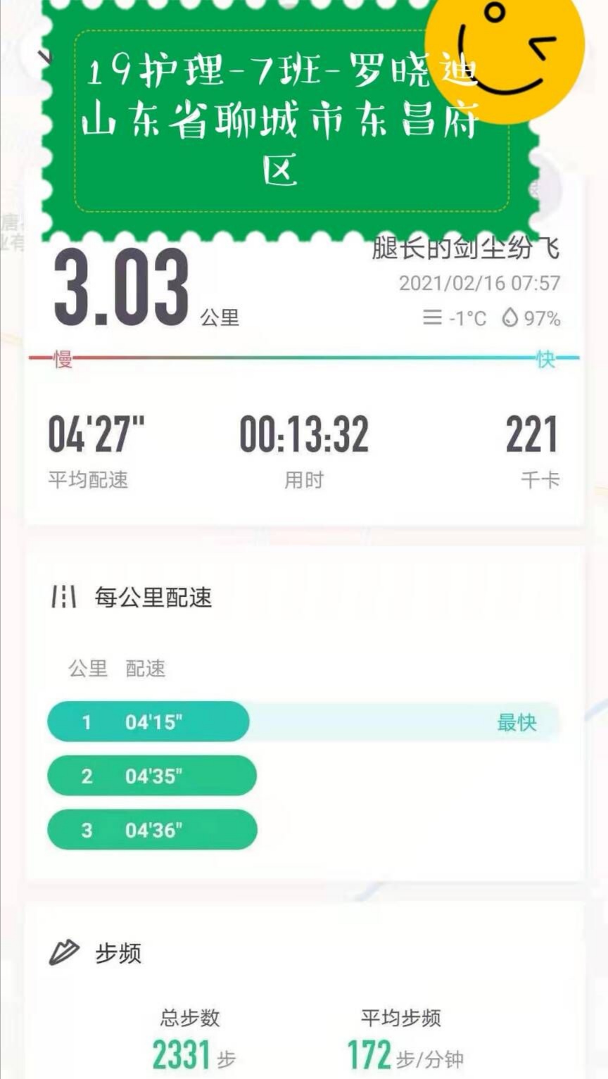 本次活动以线上形式进行,同学们身处异地,线下自主选择跑步场地,每人运动两公里以上,通过运动软件截图,在护理乘风悦跑群打卡。活动充分展现了护理学子积极向上的精神风貌,也激发了同学们迎接新学期学习生活的昂扬斗志。