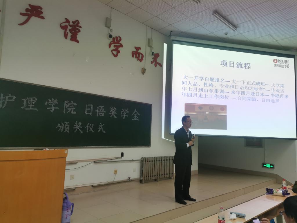 10月15日下午,威廉希尔官网在教学南楼C2024隆重举行了赴日项目日语奖学金颁奖仪式。
