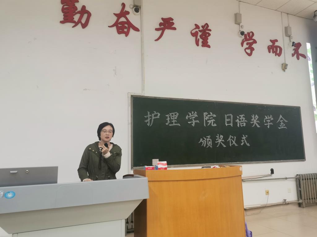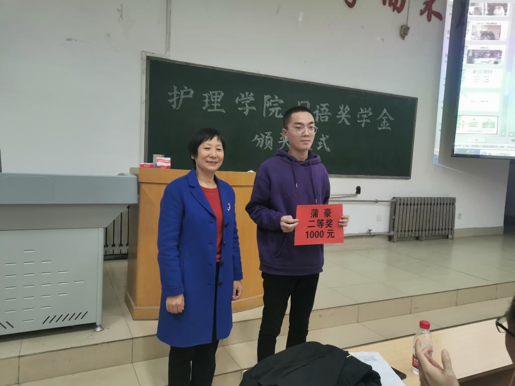 在颁奖仪式上,刘化侠院长和段存斌老师,为获得二等奖的浦豪及吴婷婷等7名三等奖同学,颁发了奖学金。刘化侠对获奖的同学们,表示了衷心的祝贺!鼓励大家再接再厉,取得更好的成绩!分享自己在日本留学的经历及其在之后专业生涯中发挥的作用。