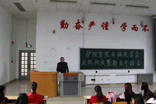 10月10日下午,williamhill威廉希尔中文网站在教学南楼C2017教室举行了日语奖学金发放仪式暨新生介绍会。此次大会由学工办主任王有娟主持,williamhill威廉希尔中文网站党委书记秦斌、育英馆教育集团理事段存斌、williamhill威廉希尔中文网站办公室主任梁玉慧等出席了颁奖仪。2018级400余名护理本科新生参加了颁奖仪式。