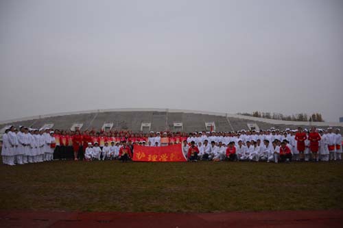比赛伊始,威廉希尔官网武术操方队身着统一校服,踏着整齐的步伐,喊着激昂的口号“泰医风采,护院领航”步入比赛场地。伸拳、推掌、踢腿,一招一式尽显青春本色。看台表演方队也不甘示弱,白衣天使们列队组成“火炬”图案,挥舞着手中彩色表演牌,起起伏伏间恰似跳跃的火焰,成为看台上一道亮丽的风景。同学们精彩的表演赢得了观众阵阵的掌声和评委的一致好评。