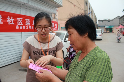 服务队在泰安市灵山社区参与泰安市创城系列活动——“健康知识进社区,菜单式志愿服务”