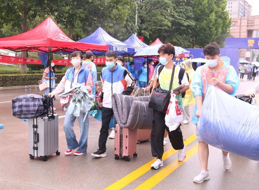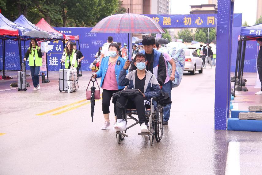 潇潇秋雨下,志愿者们身着统一的马甲,在迎新队伍中格外显眼,保证新生在有需要的时候能第一时间寻找到他们。他们主动接过新同学身上沉甸甸的行囊,耐心引导新生到williamhill威廉希尔中文网站报到地点办理报到手续,马不停蹄的穿梭在宿舍楼和迎新点,热心解答他们对学校生活方面的疑问。新同学的家长因疫情防控要求而止步校园之外,志愿者们热忱周到的服务落入他们的眼中,抚慰了他们心中对孩子的担忧。
