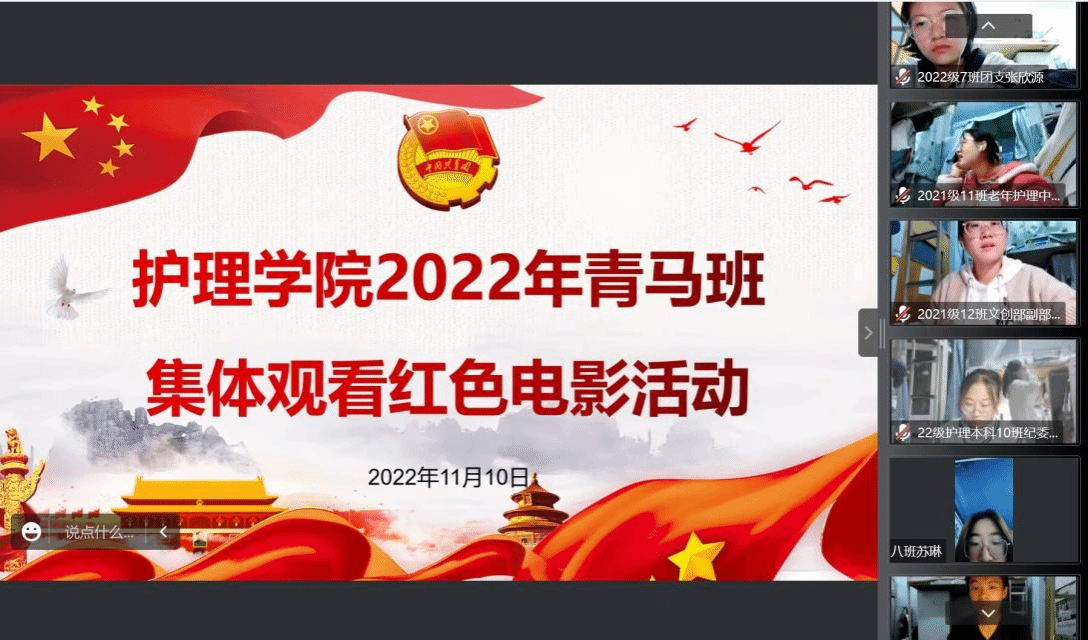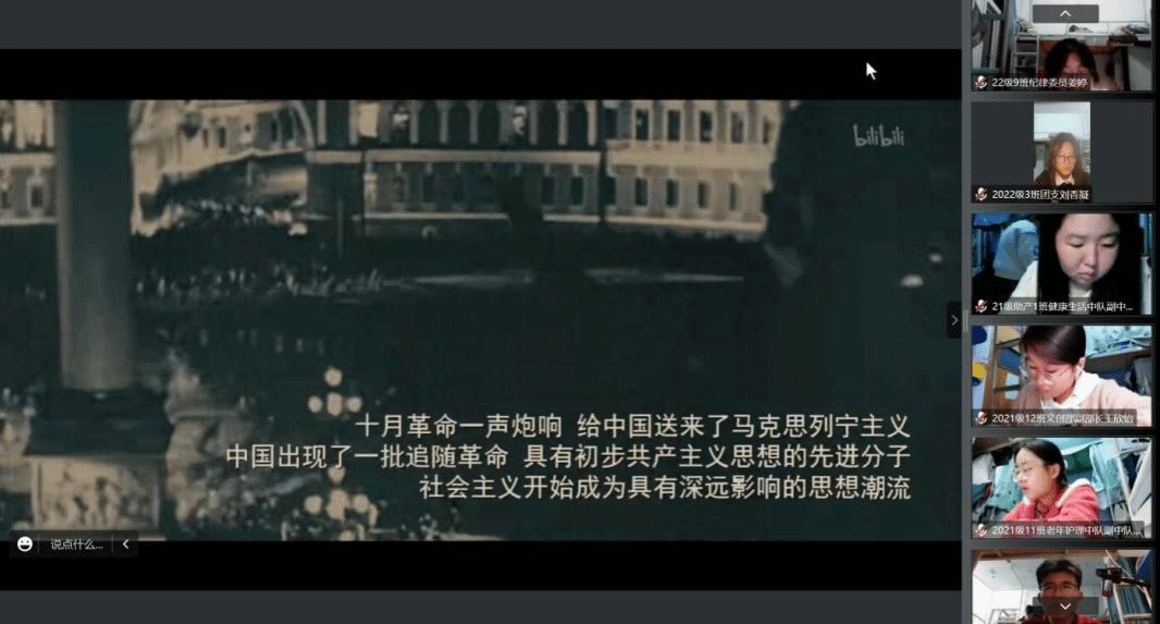 为进一步加强对青马班学员的党史学习教育,弘扬伟大建党精神,让党旗在同学们心中高高飘扬,11月10日晚,williamhill威廉希尔中文网站青马班全体学员线上观看红色影片《建党伟业》。团总支书记张恒丽参加活动。