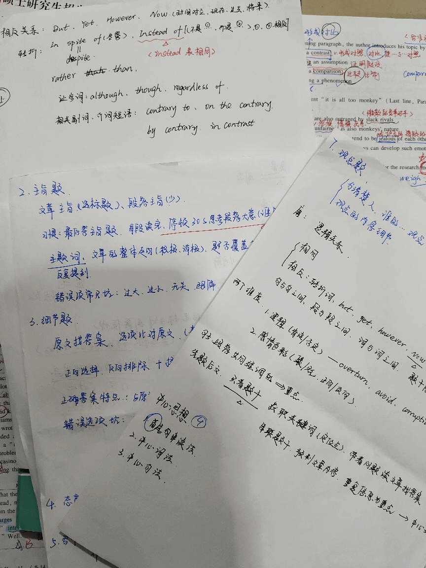 阅读:阅读题重点在于对单词的认识与理解。在学习前期看视频课、技巧课,后期要自我总结。当你做到最后几年的真题时,你可能会自己推测出哪句话中有答案且后期节省时间,你会发现只看答案册上的讲解也能看懂,不需再刷视频课。