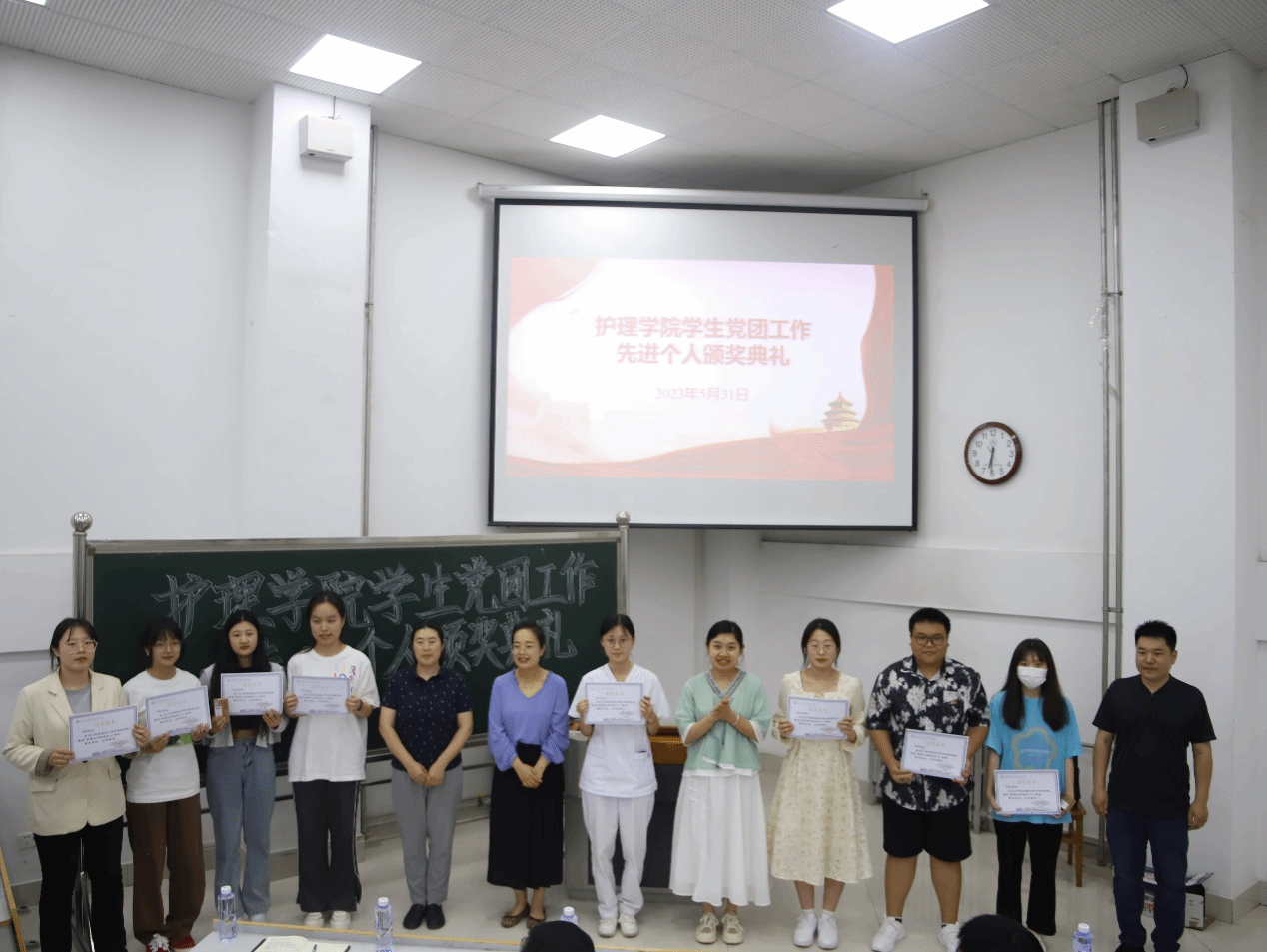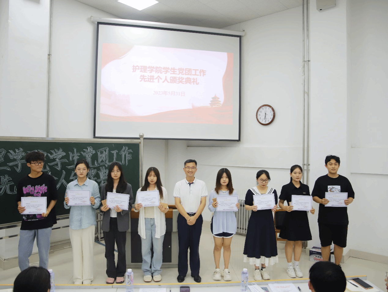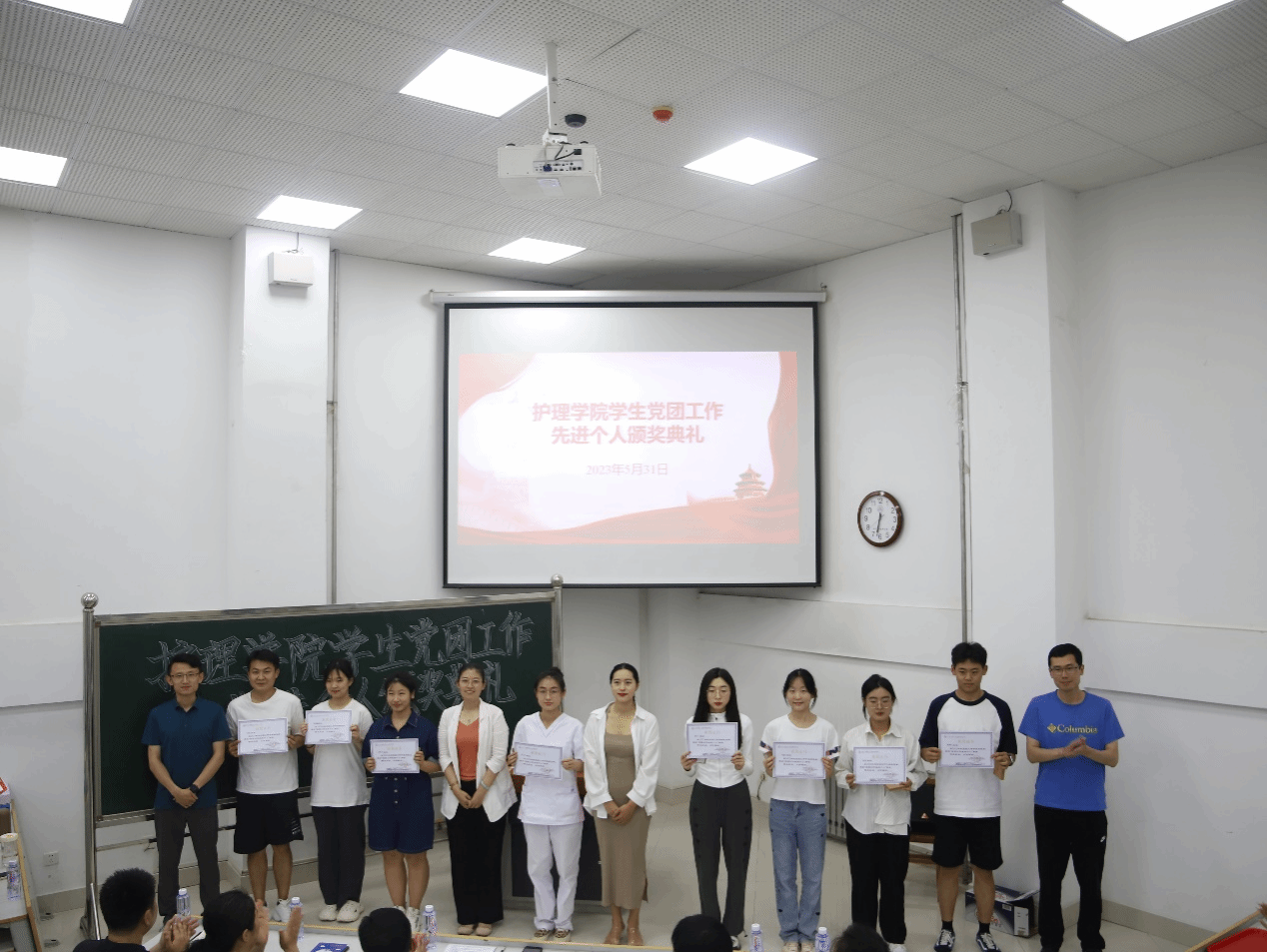 会上,学院老师为获奖学生代表颁发奖状和奖品,并向他们表示热烈祝贺,希望同学们珍惜荣誉,在今后的学习工作中再接再厉,进一步发挥先锋模范作用,希望全体同学以受表彰的同学为榜样,比学赶超,齐心协力为学院“最美护理”建设贡献力量。随后获得表彰的刘依然、梁慧、田雨辰、栾锦程、赵雅娴等五位学生代表结合自身工作作了典型发言。