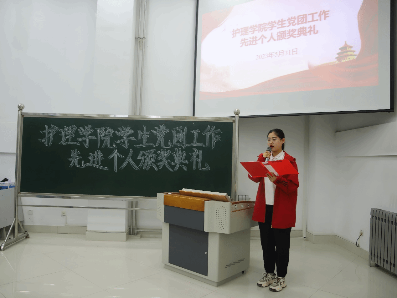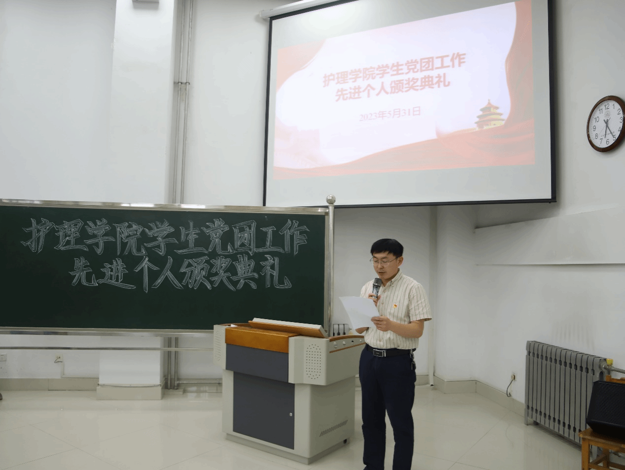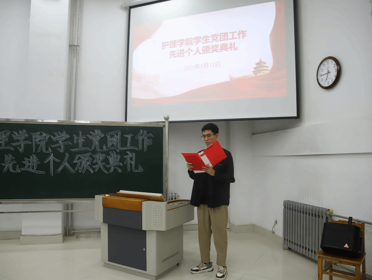 会上,学院老师为获奖学生代表颁发奖状和奖品,并向他们表示热烈祝贺,希望同学们珍惜荣誉,在今后的学习工作中再接再厉,进一步发挥先锋模范作用,希望全体同学以受表彰的同学为榜样,比学赶超,齐心协力为学院“最美护理”建设贡献力量。随后获得表彰的刘依然、梁慧、田雨辰、栾锦程、赵雅娴等五位学生代表结合自身工作作了典型发言。