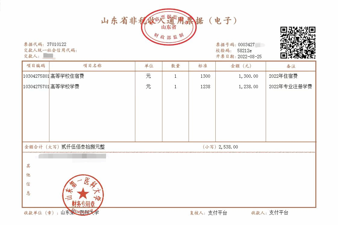 学生在williamhill威廉希尔中文网站校园统一支付平台完成缴费后直接生成缴费电子票据(详见校园统一支付平台使用说明)。电子票据自行打印(票据为新生报到必需材料)。