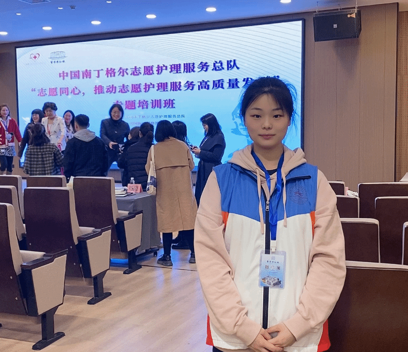 作为团支书,她积极做好老师和同学们之间沟通的桥梁。作为服务队的执行队长,她不断探索志愿服务新形式、新领域,同时参与组织512国际护士节晚会、迎新工作等各类文娱活动和常规工作。她分享道:这两年的学生工作经历让她的沟通能力、组织能力、统筹能力都得到了一定的提高,现在和高中最大的不同是,身为大学生的我们需要自己主动地去安排自己的生活。与其说机会是留给有准备的人,不如说机会是留给有准备并且主动“出击”的人。