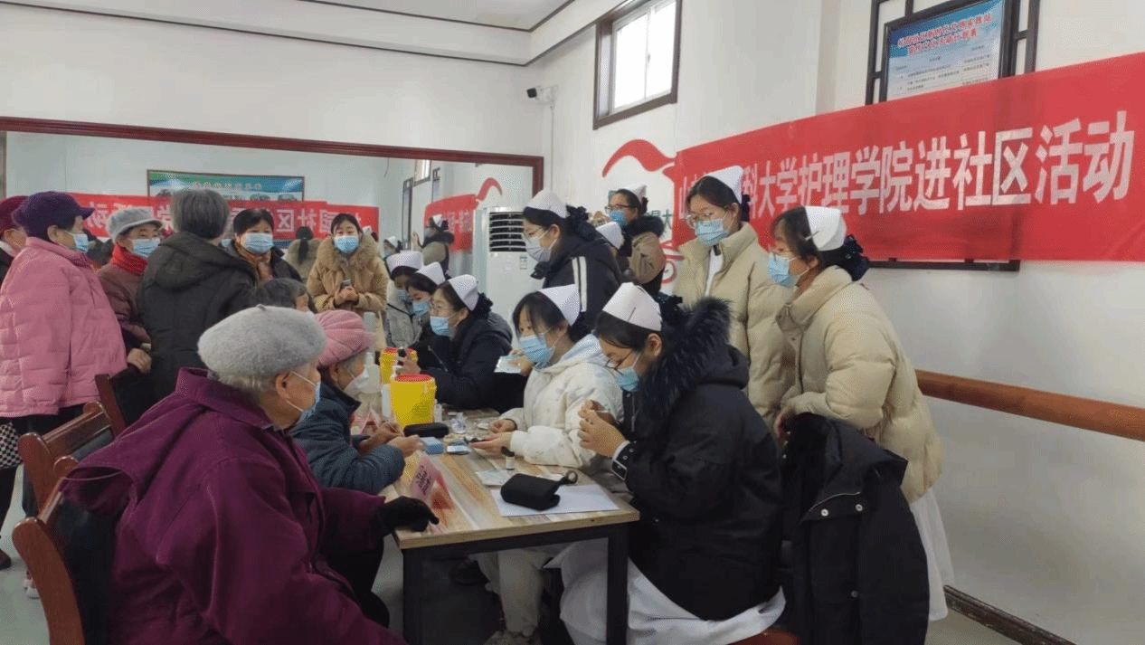 为贯彻落实教育部《高等学校课程思政建设指导纲要》文件精神,落实立德树人根本任务,1月4日上午,williamhill威廉希尔中文网站教师和学生15人联合第二附属医院普外科王焕云护士长、冯善龙副主任医师、宋康健医师、袁金燕主管护师、闫雪护师、麻醉科王瑶瑶医师组成校院联合团队到松园社区居家养老服务中心进行“传播健康知识 助力健康生活”志愿健康教育和义诊活动。