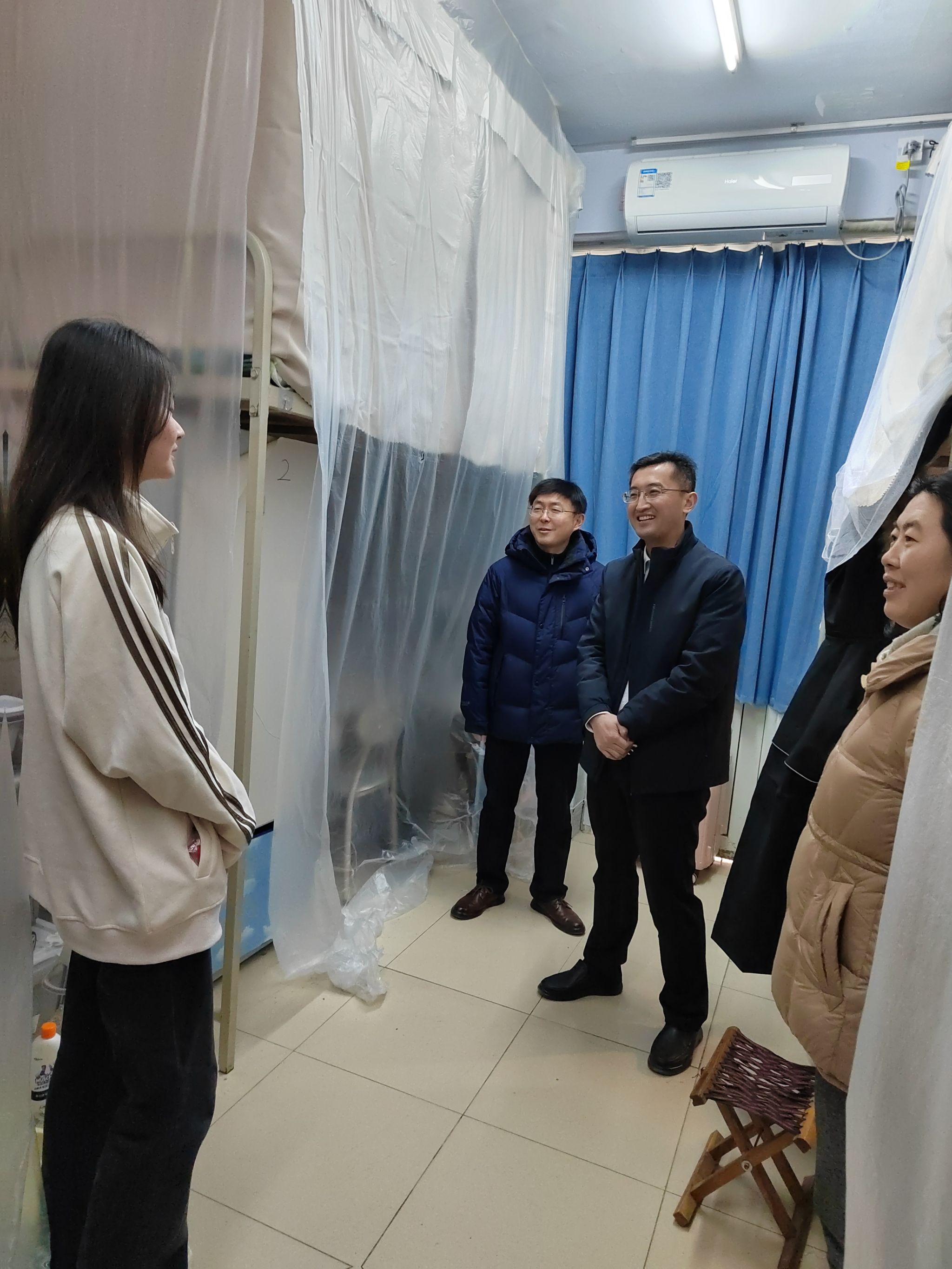 走访过程中,张延玲详细询问了同学们寒假期间的学习生活情况,对大家假期充实的安排表示肯定。他强调,新学期是新开始,新开始要有新目标,同学们要及时制定新学期学习计划,保持积极的学习态度,只争朝夕奋斗拼搏,推动自身德智体美劳全面发展,在新的一年遇见更加优秀的自己。此次走访,老师们还着重强调了宿舍安全问题,要筑牢安全防线,特别针对宿舍安全隐患向同学们强调了安全用电和保持宿舍卫生整洁的重要性。
