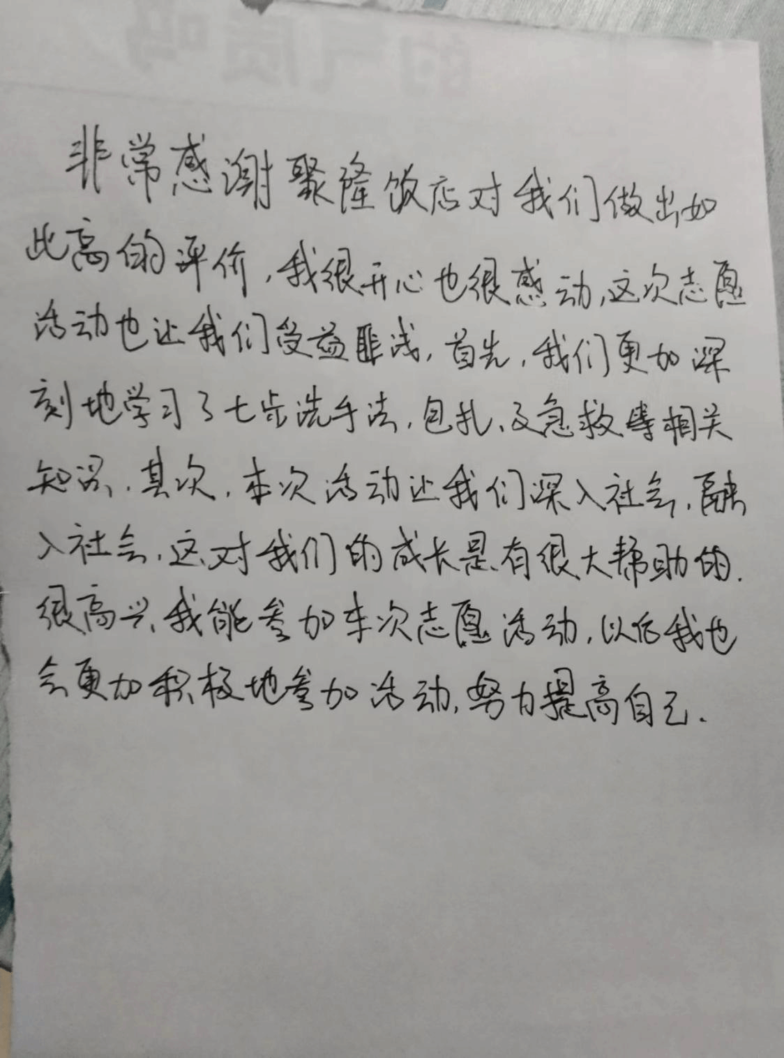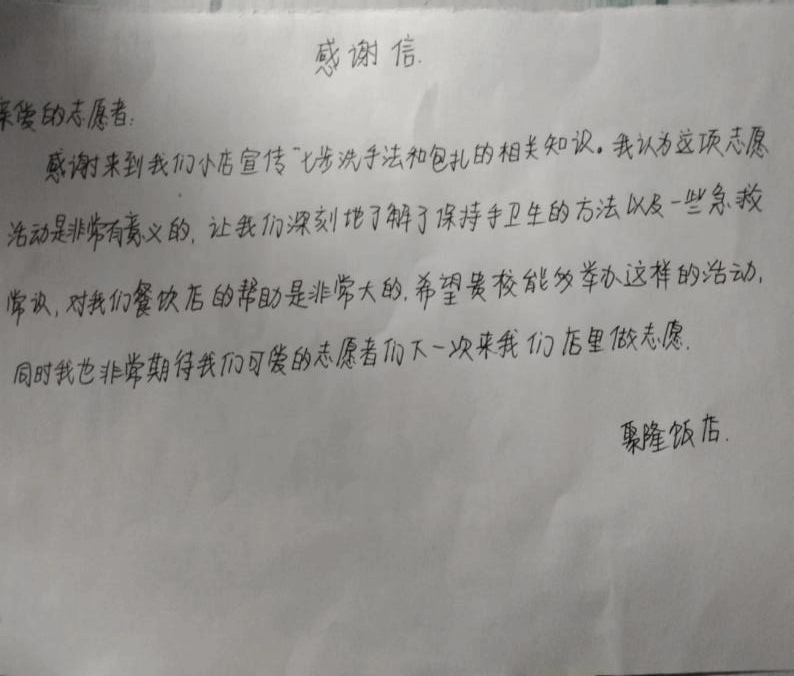 感谢社区给予我们开展此次志愿活动的机会,正是因为你们的积极配合,此次志愿活动才得以顺利进行,让我们实打实地向群众宣传应急救护方法。