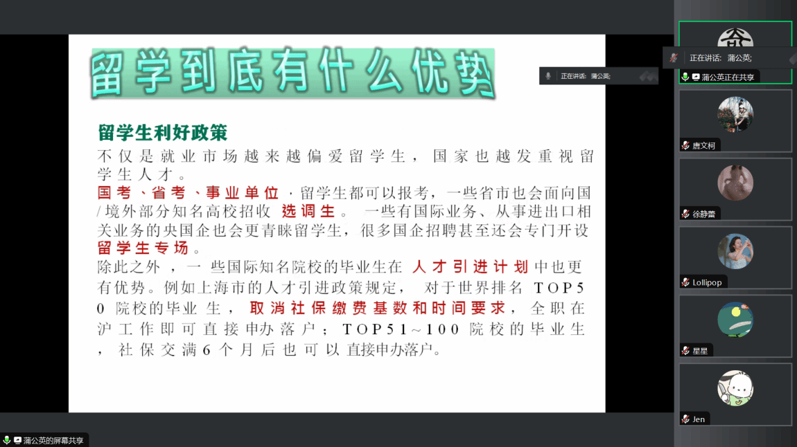 张元杰从北安普顿大学的学术氛围、专业设置以及留学生活等方面展开了详细的介绍,同学们对英国的教育体系和文化有了初步的了解。张元杰简要说明了到北安普顿大学留学的优势,以及学校对留学生培养的优待措施,并表示留学读研对提升学生的自身实力和拓宽职业发展前景有很大的帮助。